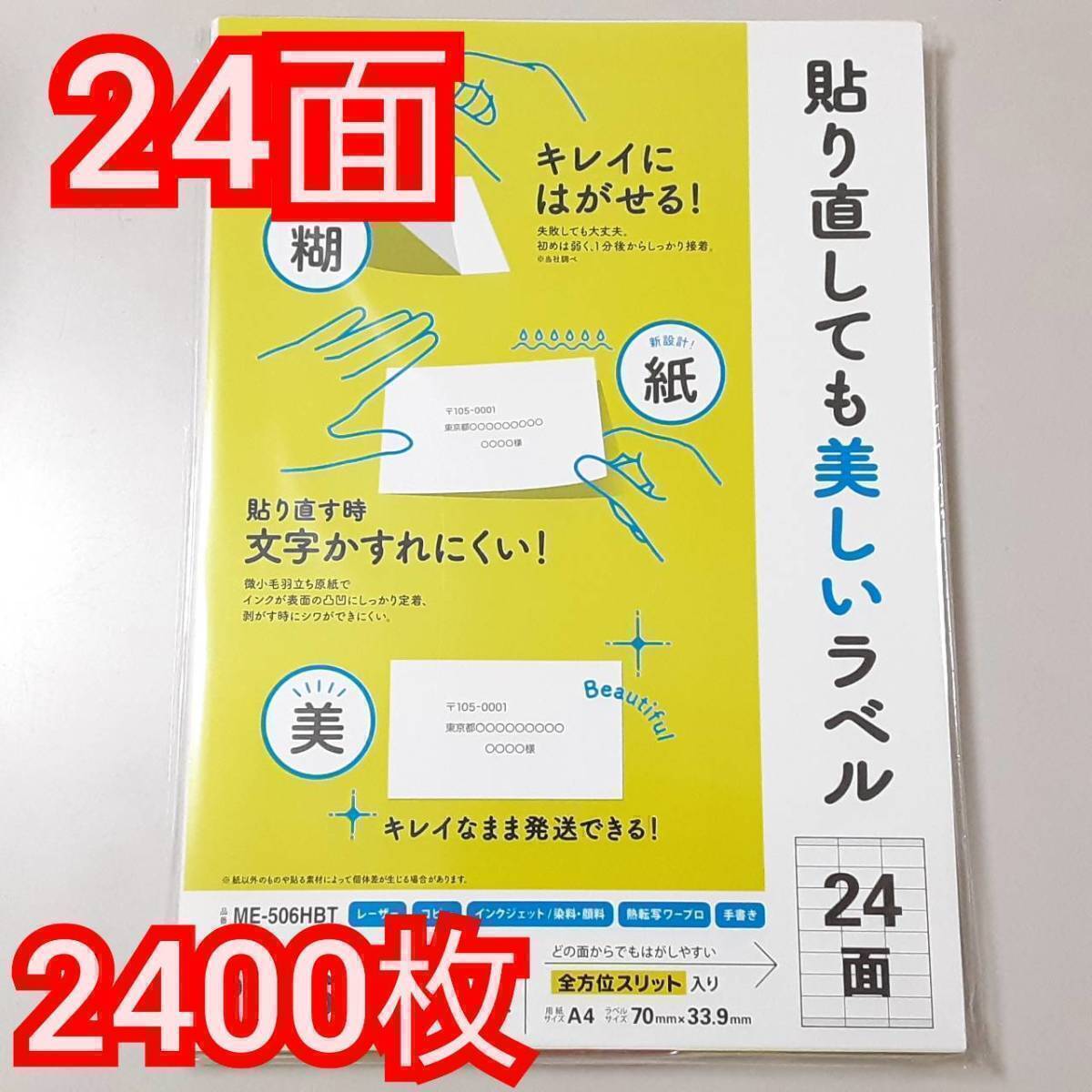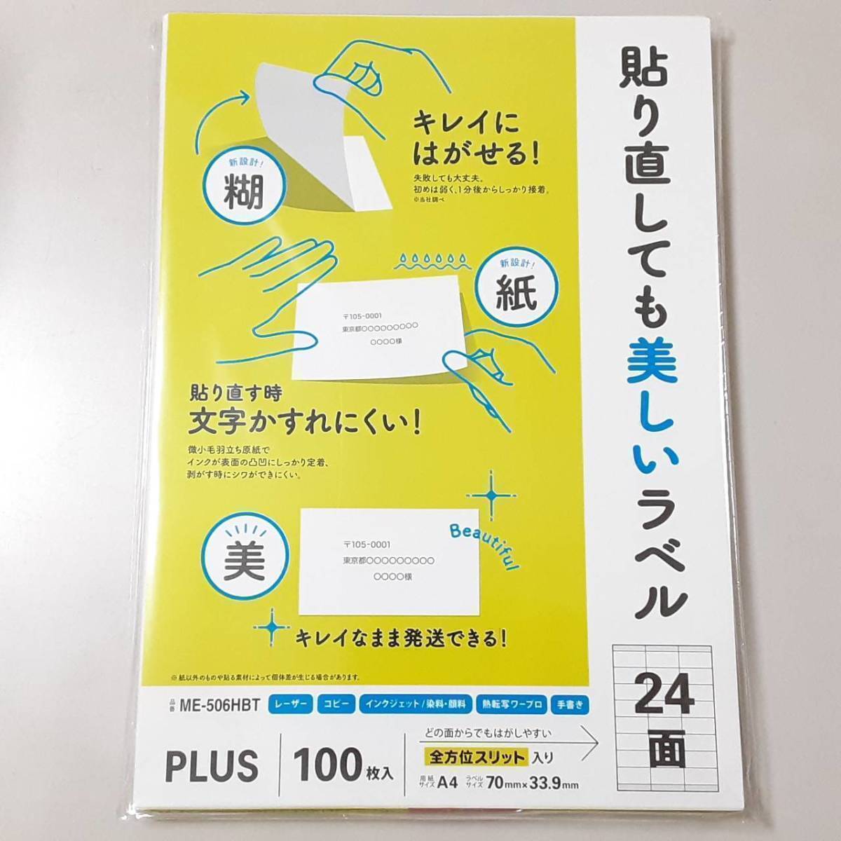 送料無料 プラス マルチラベル シール 24面100×1パック 合計100シート(2400枚) 貼り直しても美しいマルチラベル 100枚 ME-506HBT 新品