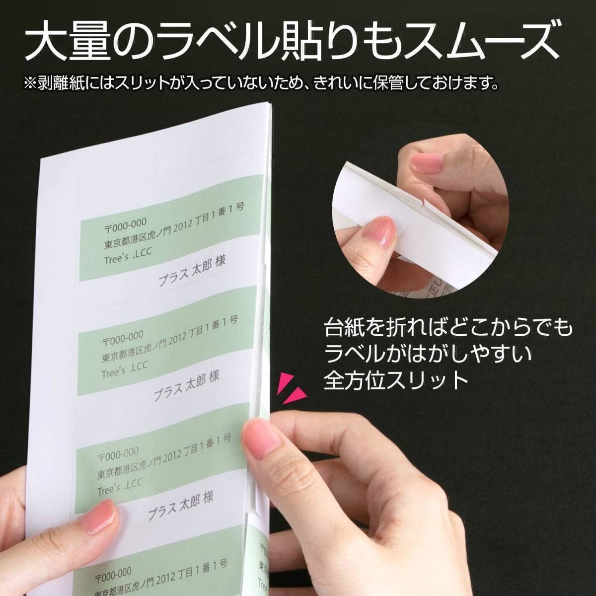 ◆用紙の余白に入ったスリットでラベルを台紙からはがしやすい