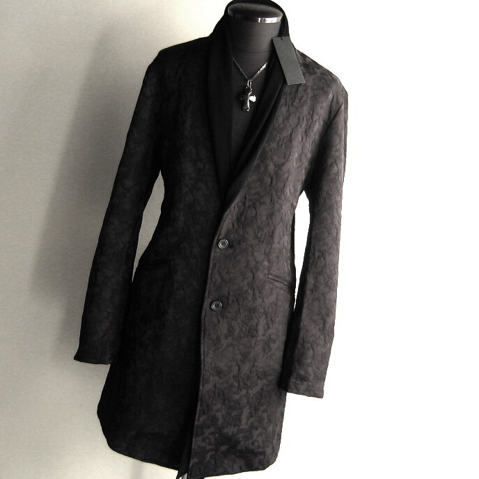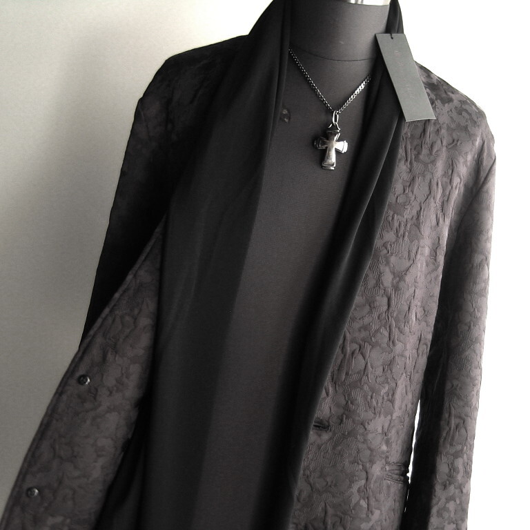 ■ノーカラーベースの2Bチェスターにとろみのあるジャージー素材をストール風にドッキング