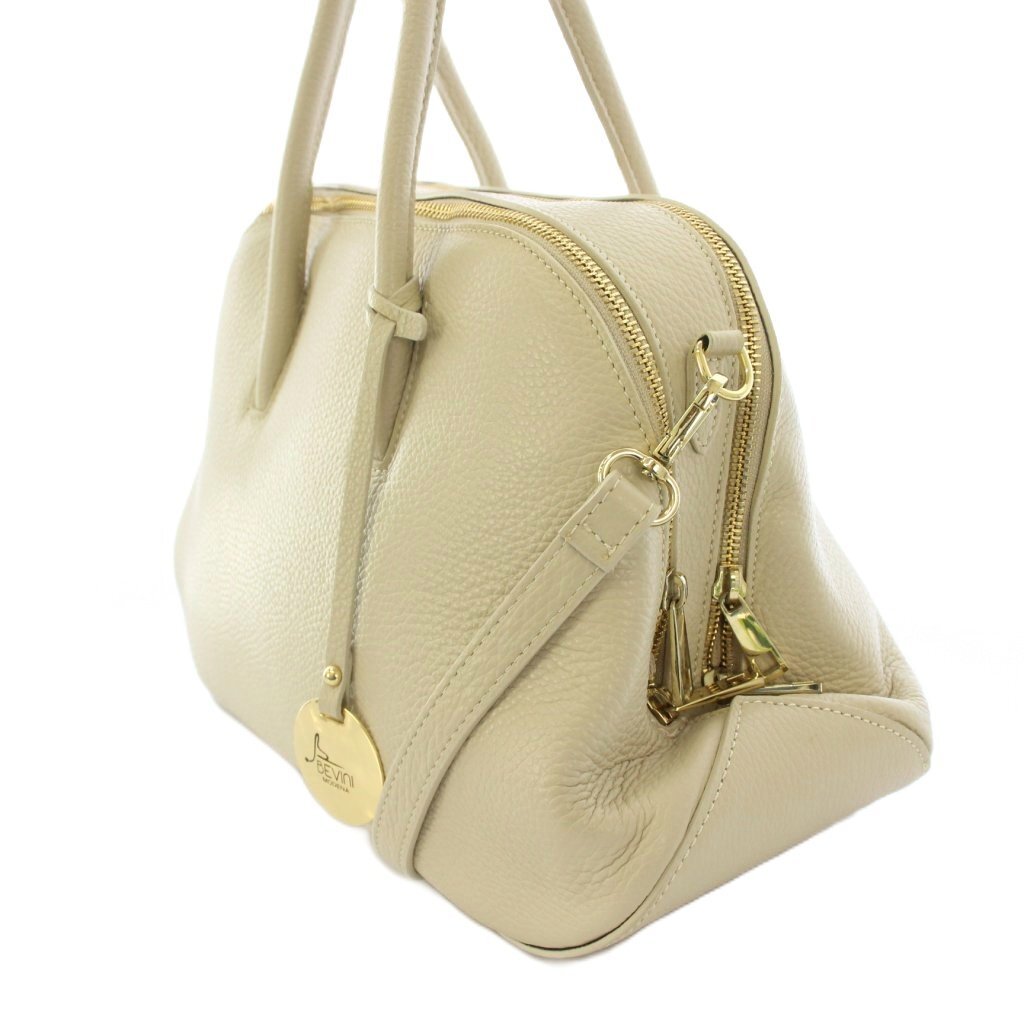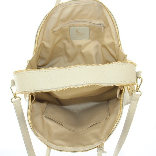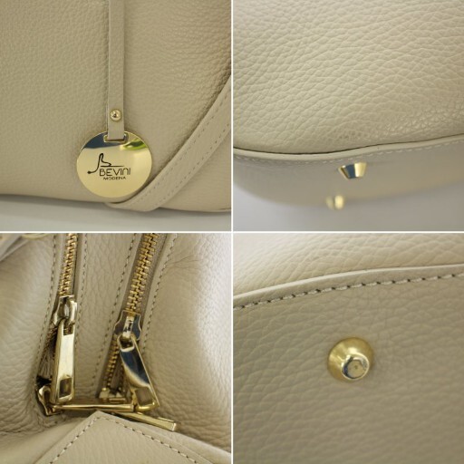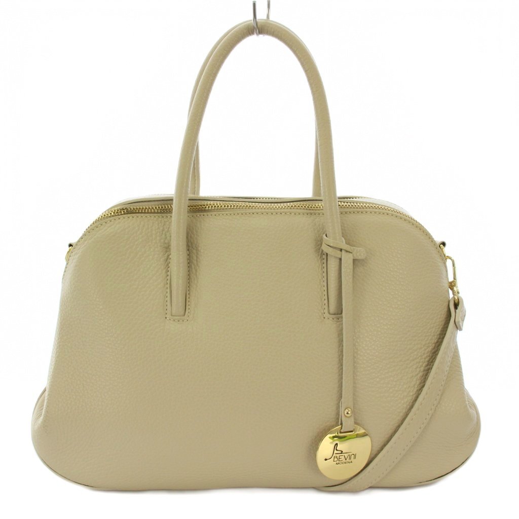 ベヴィニモデナ zipボストンR 2WAY トートバッグ ハンドバッグ ショルダーバッグ レザー ロゴチャーム ワンカラー アイボリー