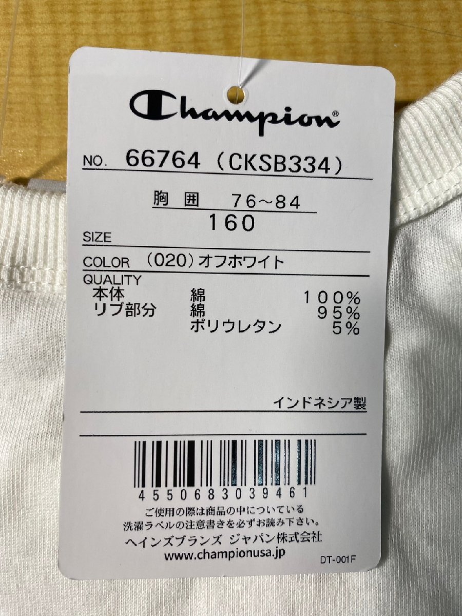 T40-66764 champion チャンピオン Tシャツ キッズ 160サイズ 胸囲76~84 オフホワイト 綿100%