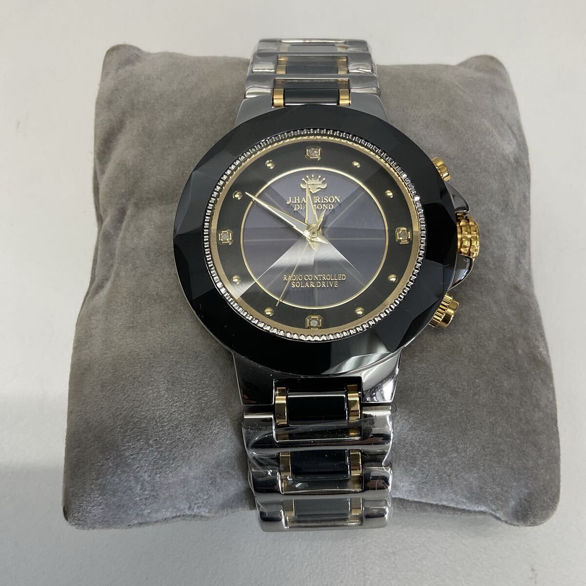 J HARRISON ジョンハリソン 4石天然ダイヤモンド付 ソーラー電波時計 JHー024M メンズ腕時計 腕周り最大20cm 未使用品