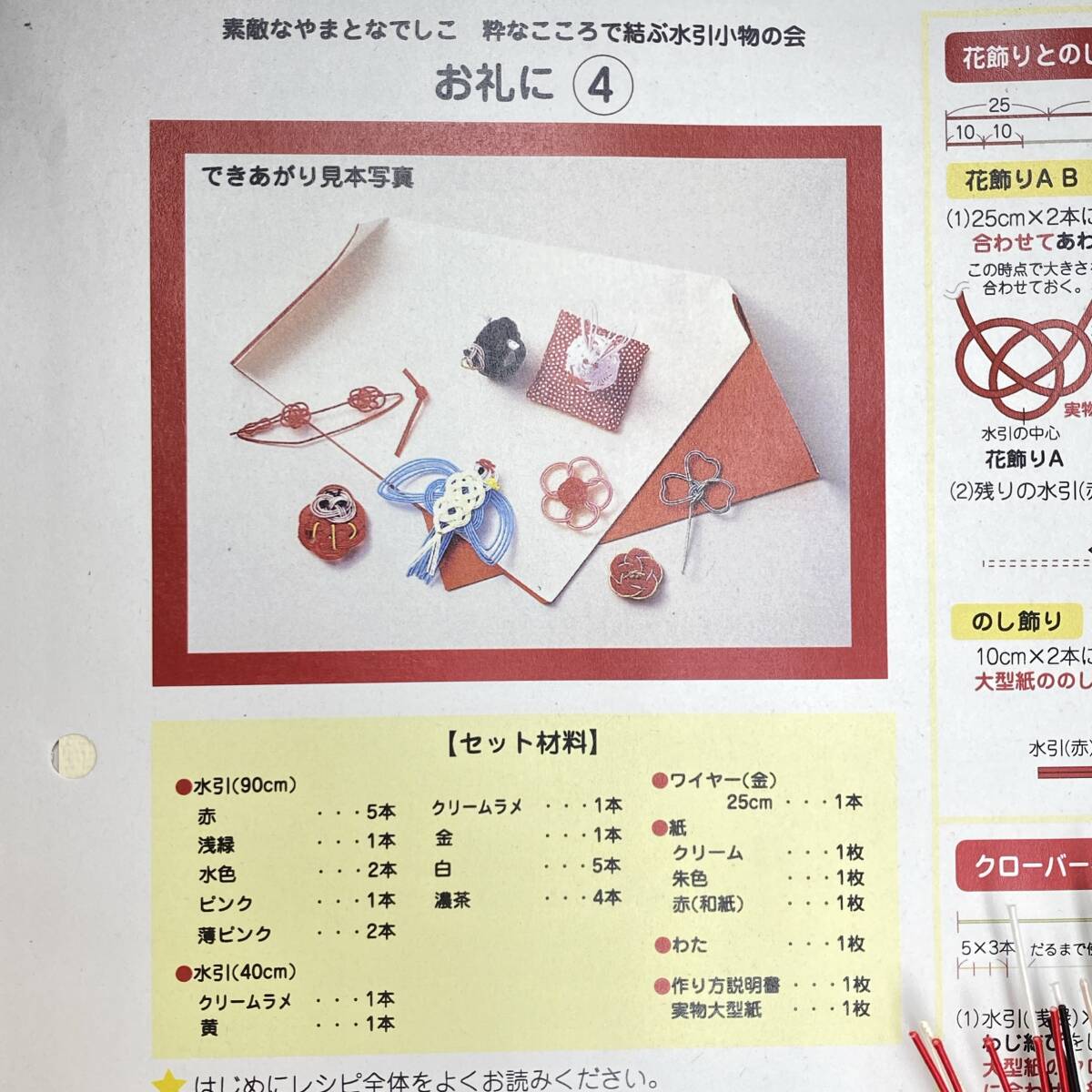 フェリシモ 水引手作りキット 6点セットです。 FELISSIMO Couturier 「素敵なやまとなでしこ 粋なこころで結ぶ水引小物の会」全6回のコレクション 十二支やお正月にぴったりの飾り、ラッピングに使える和の小物が手作りできるキット。 材料と説明書が入ってます。 |
