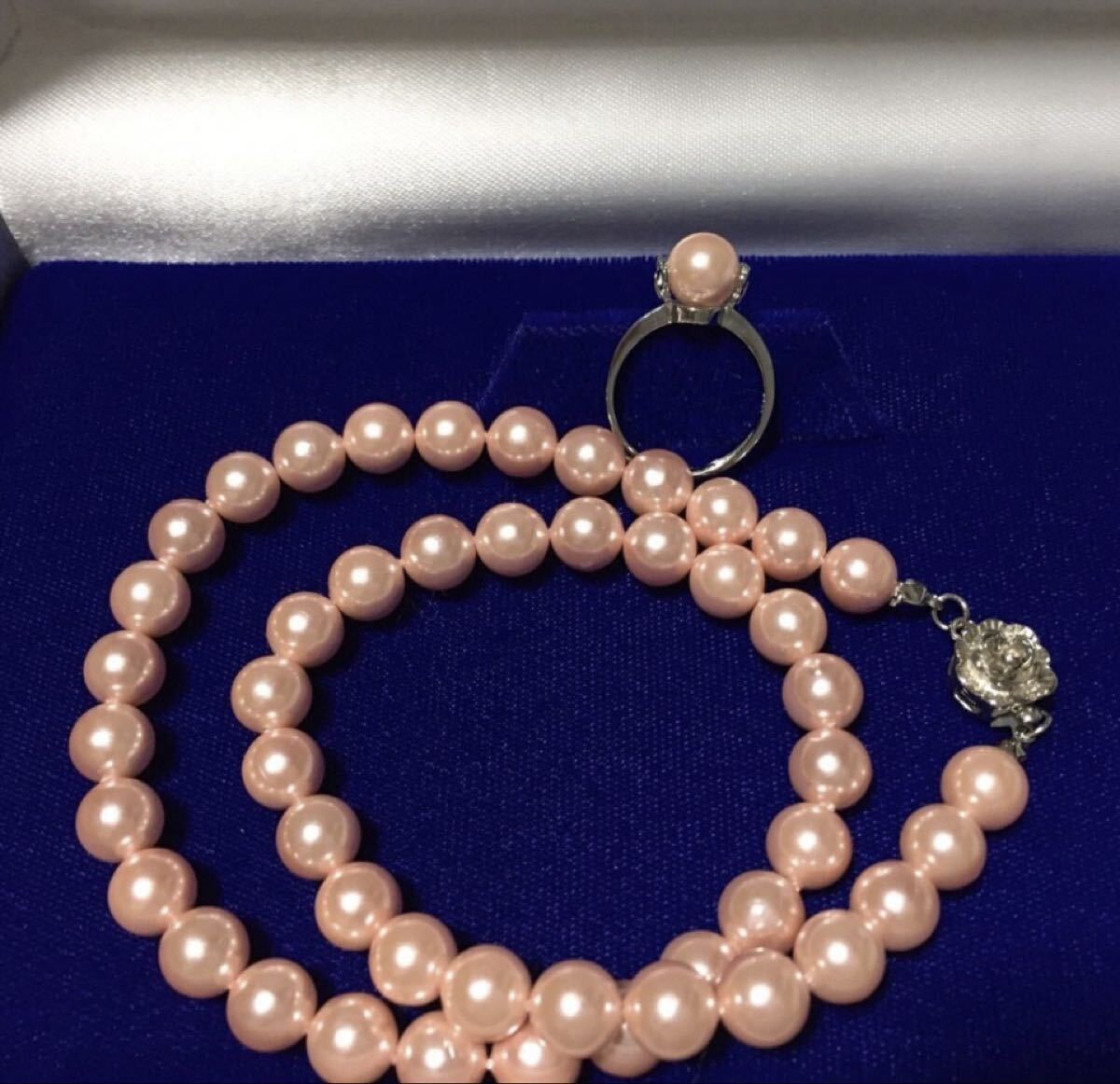 日本製 ピンクシェルパールネックレス 貝パールネックレス 約8mm玉 全長約42cm