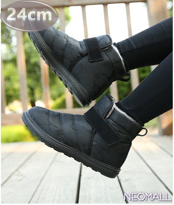 ユニセックス スノーシューズ 【870】 24.0cm 迷彩ブラック ムートンブーツ スニーカー ウィンターブーツ 裏起毛 防水 防寒 防滑 冬用靴