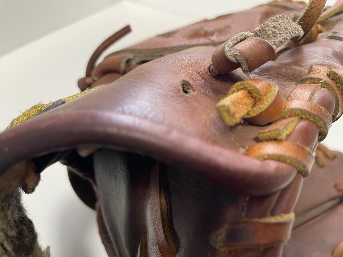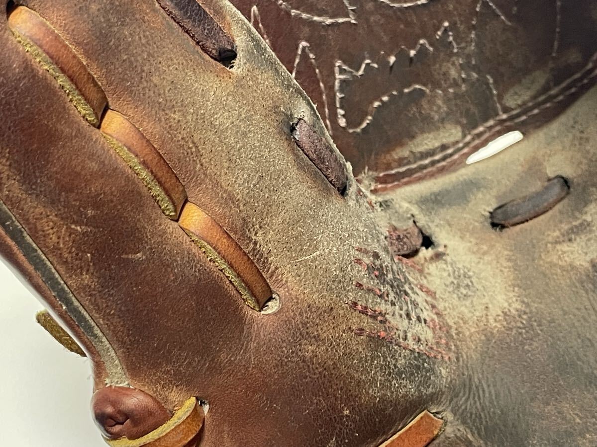 捕球面に修理跡、親指の指かけが片方ちぎれております。