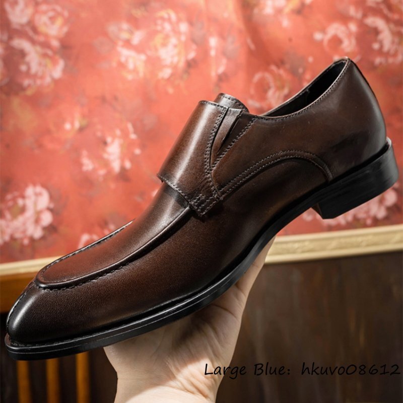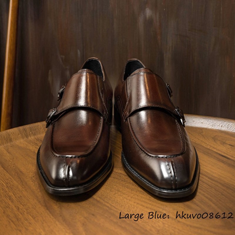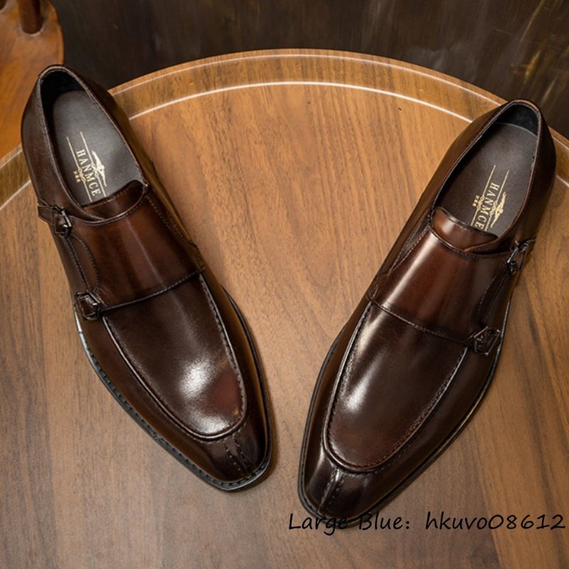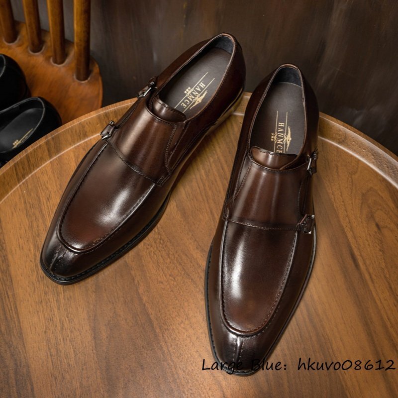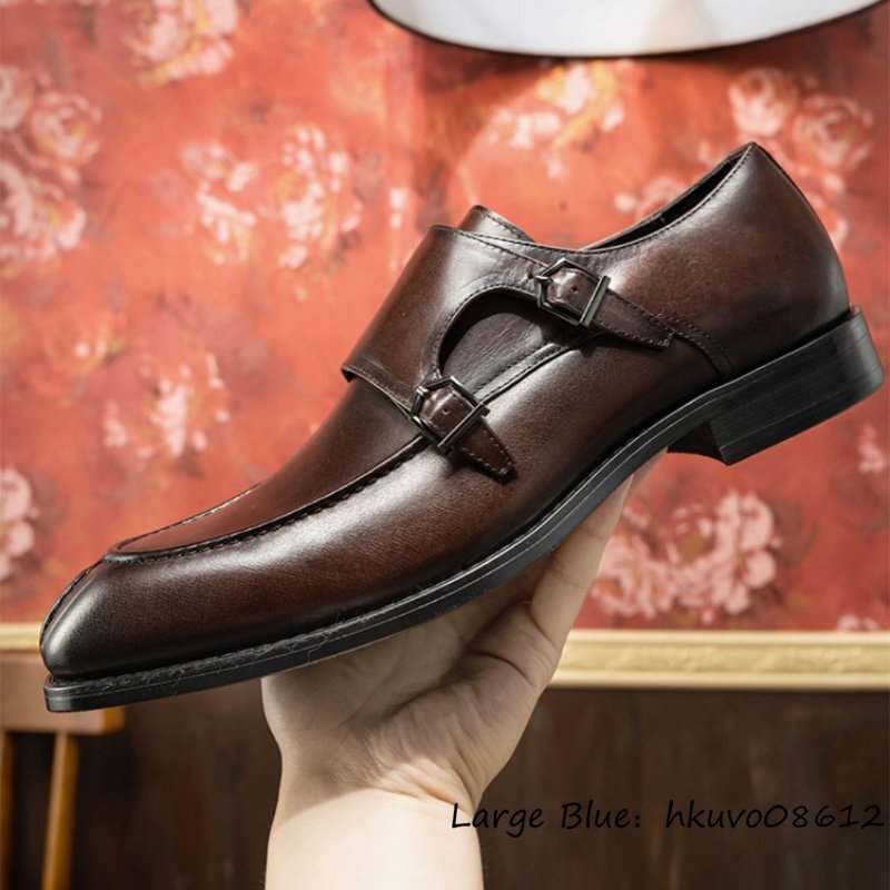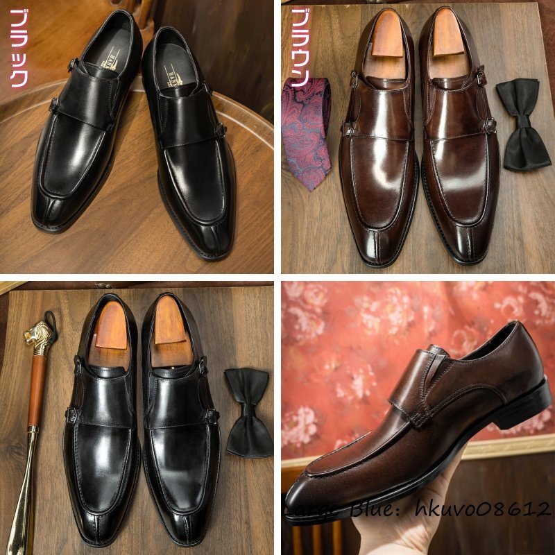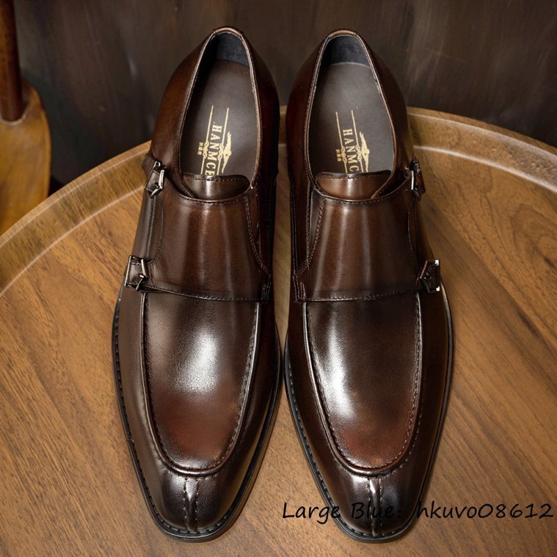 極美品◆高級牛革 モンクストラップ メンズ 本革 職人手作り レザーシューズ ビジネスシューズ 革靴 紳士靴 フォーマル ブラウン 24.5cm