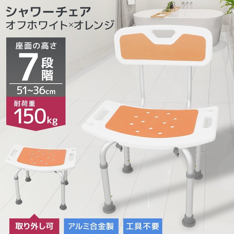 WEIMALL シャワーチェア 座面の高さ 7段階調節 背もたれ付き セミサポートタイプ カラー: オフホワイト × オレンジ 膝や腰の負担を軽減!シャワーチェアです。 身体に合わせて高さ調節ができ、立ち上がる際の膝と腰の負担を軽減できます。 ボタンを押しながらスライドさせて簡単にお好みの高さに変更可能! シャワーチェアの脚の先は滑りにくいゴム製になっているので転倒防止になります。 座面に排水穴があり、水がたまらないので清潔! クッションマット付きでひんやりを解消! フレームは丈夫なアルミ合金製で、丸みを帯びた曲線が身体にフィット感をもたらします! 座面部は、滑り止め加工が施され、安心して使用いただけます。 座面の高さは7段階調節可能! 座面の持ち手は、立ち上がる時にギュッと掴んで身体を踏ん張る時に便利! 膝や腰が痛い方にオススメなやさしい設計になっています。 |