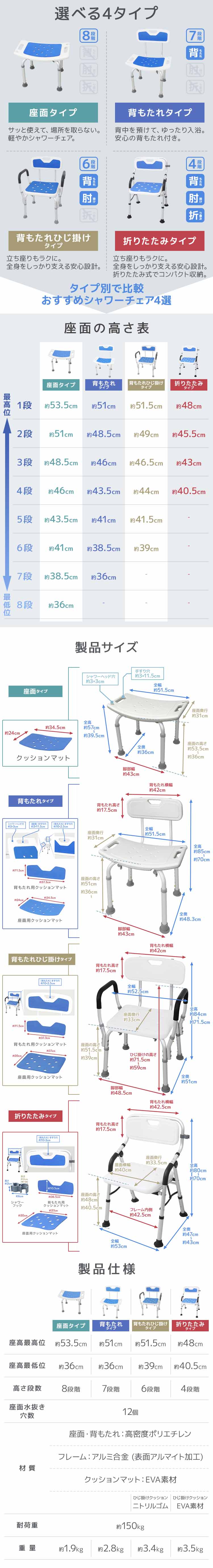 シャワーチェア 高さ7段階 背もたれ付きタイプ カラーバリエーション | |