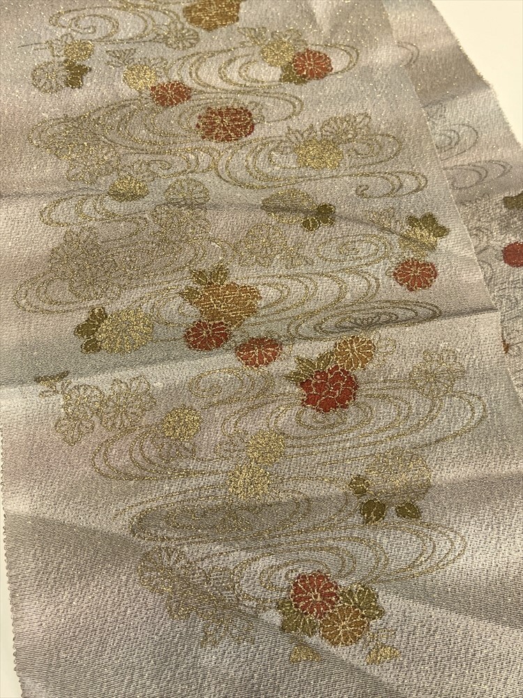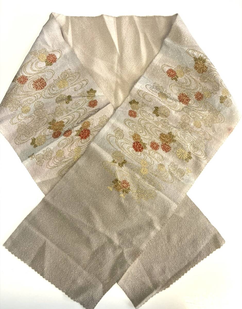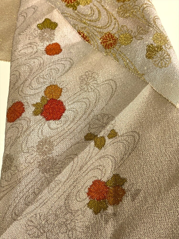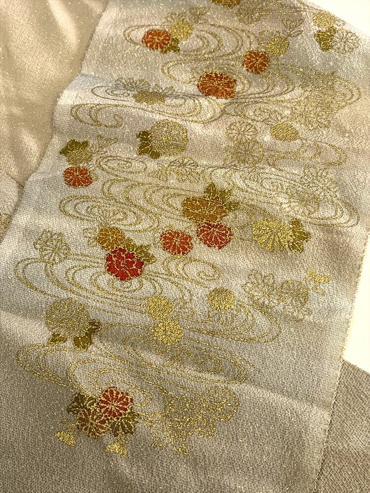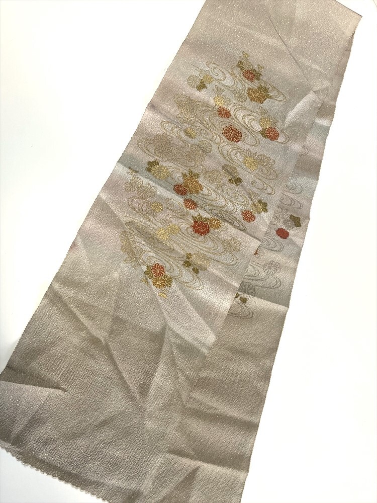花とら●リサイクル和装小物 半衿 半襟 ラメ 流水 菊 ベージュ リメイク 素材 細工用にも    250920