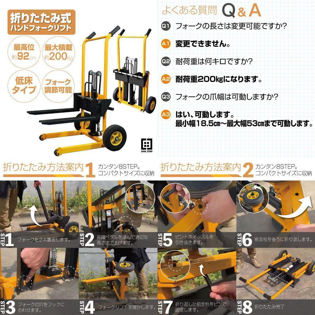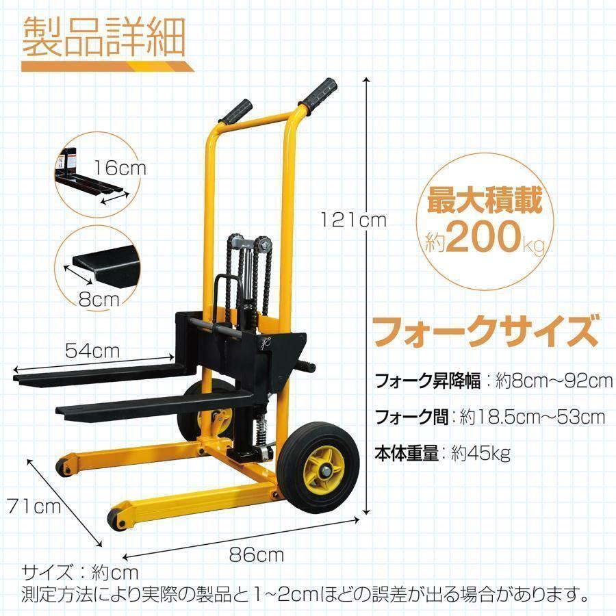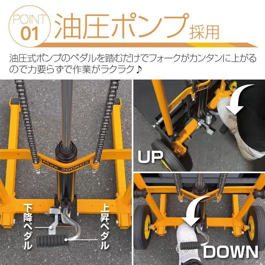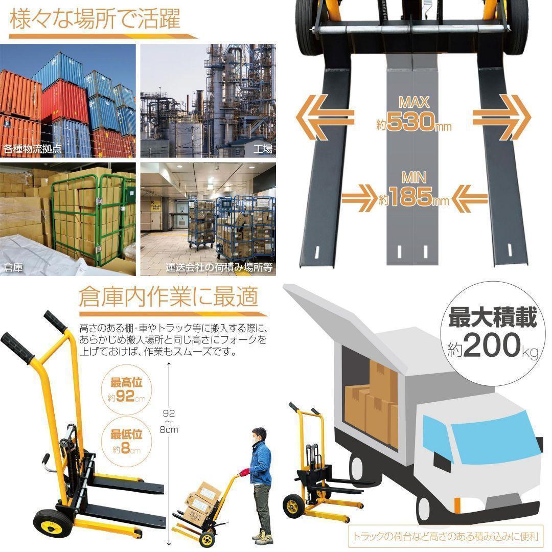 約18cm〜92cmまで昇降可能。最大200kgまで荷物を載せられる♪