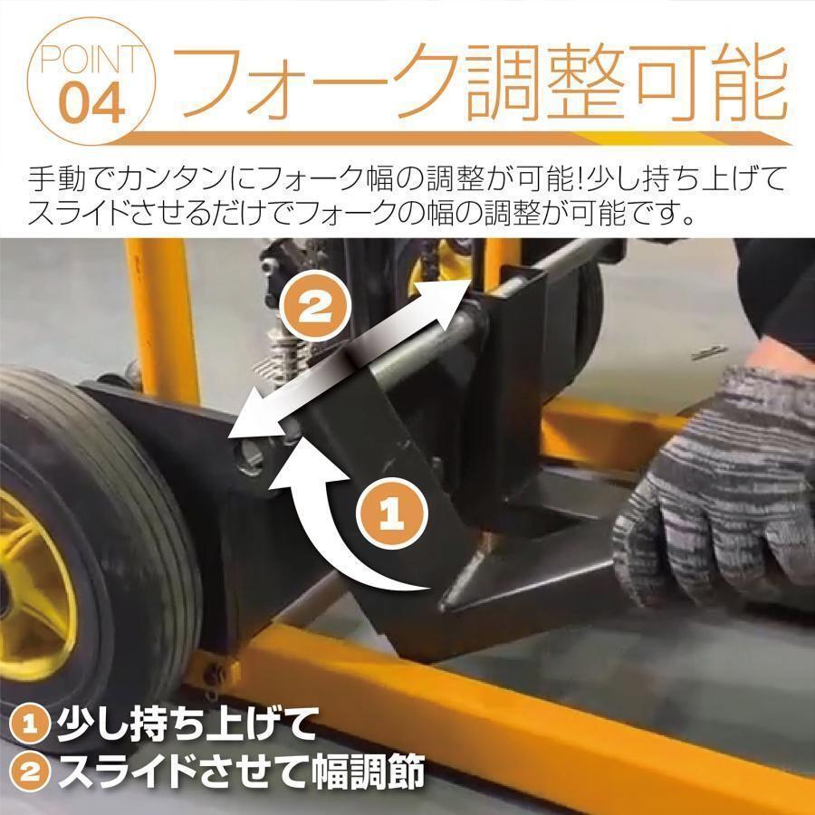 少し持ち上げてスライドさせるだけで簡単にフォーク幅の調整が可能!