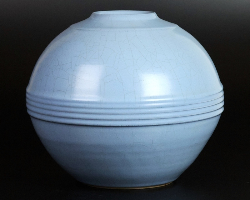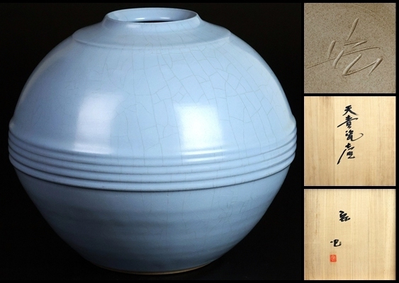 【 中島宏 】最上位作 天青瓷壷 直径29.7cm 人間国宝 共箱 保証