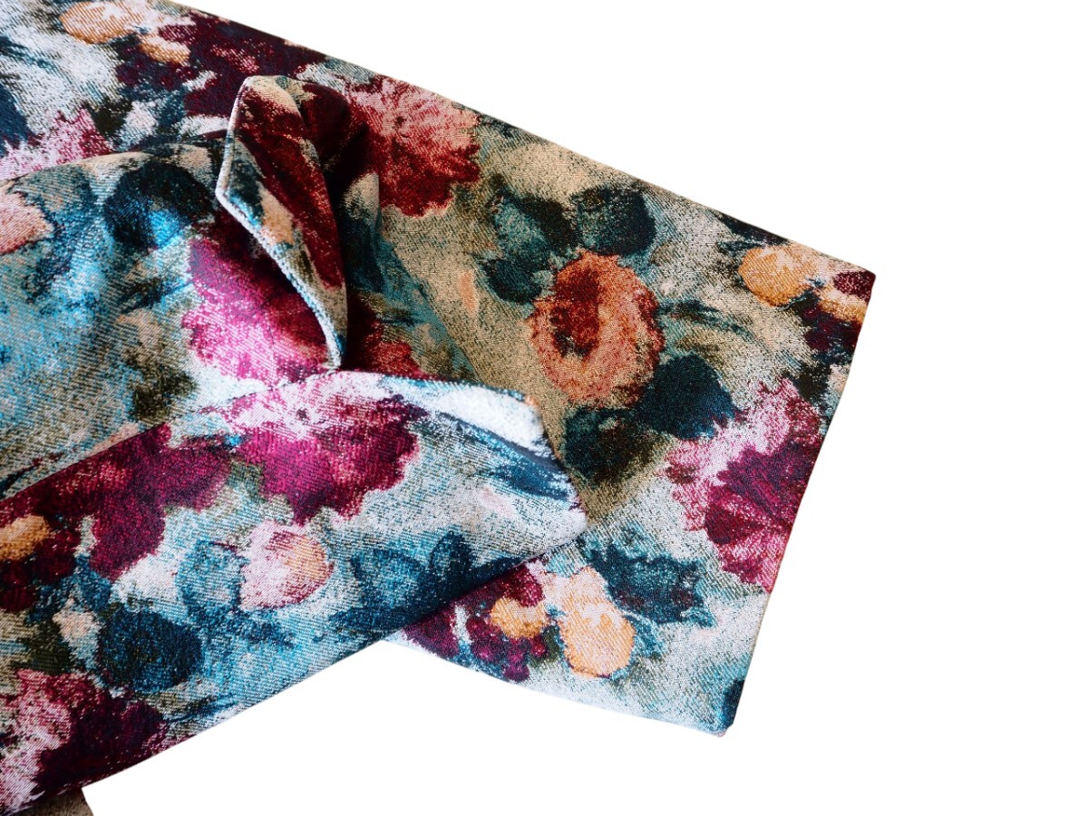 Flower柄はプリントではなく生地にに織り込まれた高級感あるジャガード生地