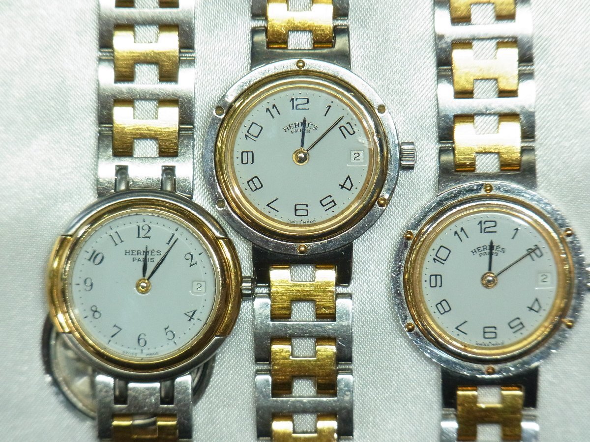 1円~【不動3本まとめ】エルメス HERMES ウィンザー/クリッパー フォーマルウォッチ レディース 腕時計 クオーツ 2針 デイト ラウンド SSxGP 本体シルバーxゴールド 文字盤ホワイト系 純正ベルト | |
