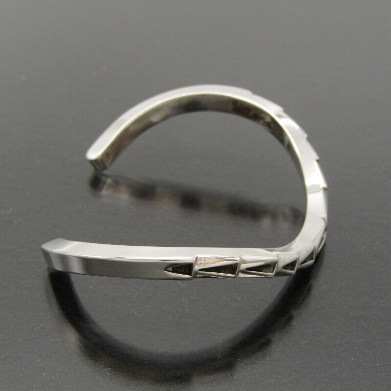 SIZE | 幅:約 4.1mm 内周:約 130mm 開口:約 30mm 内周合計:約 160mm 厚さ:約 3.8mm 重さ:約 22.2g ※インディアンジュエリーにはハンドメイド特有のゆがみ・ずれや傷等がある為、表記サイズには多少の誤差がございます。 |