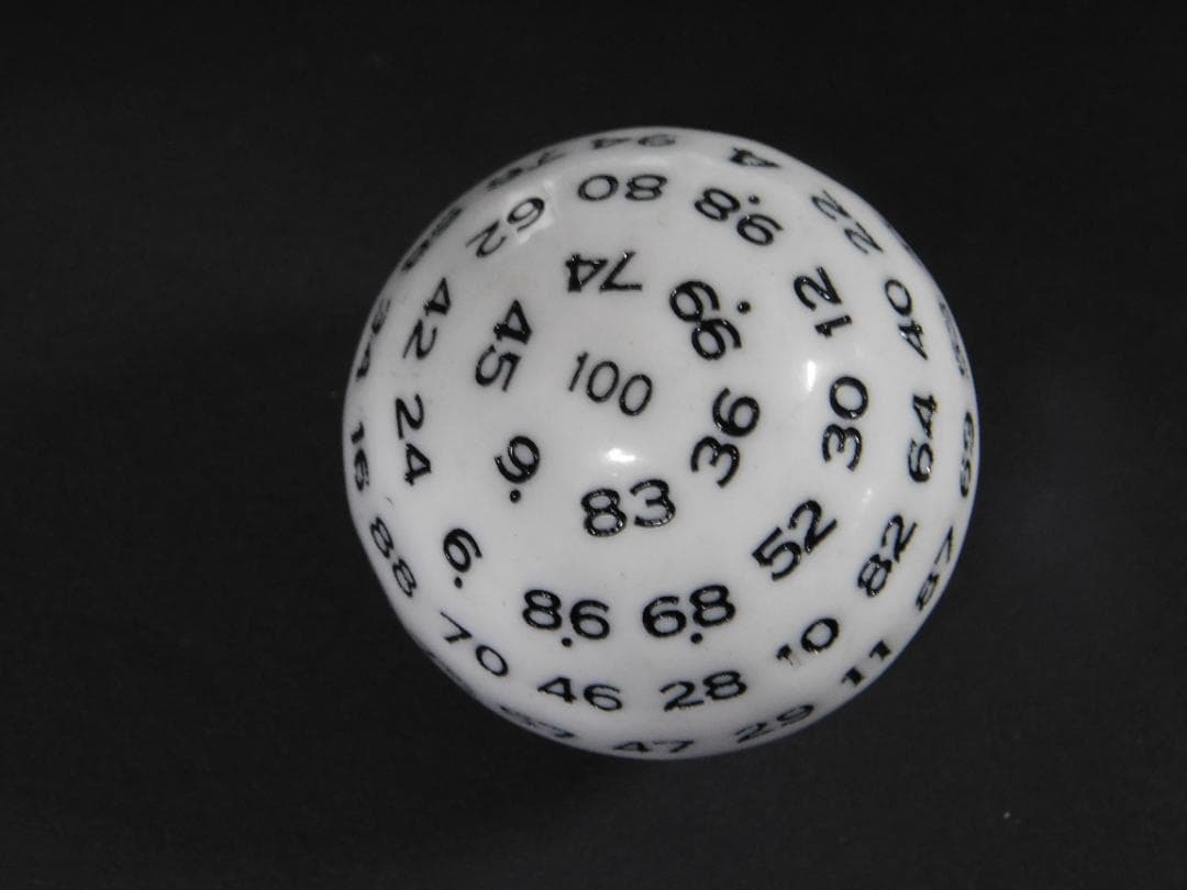 @★新品★100面サイコロ 100面ダイス さいころ(白)約4.5cm★送料込み★