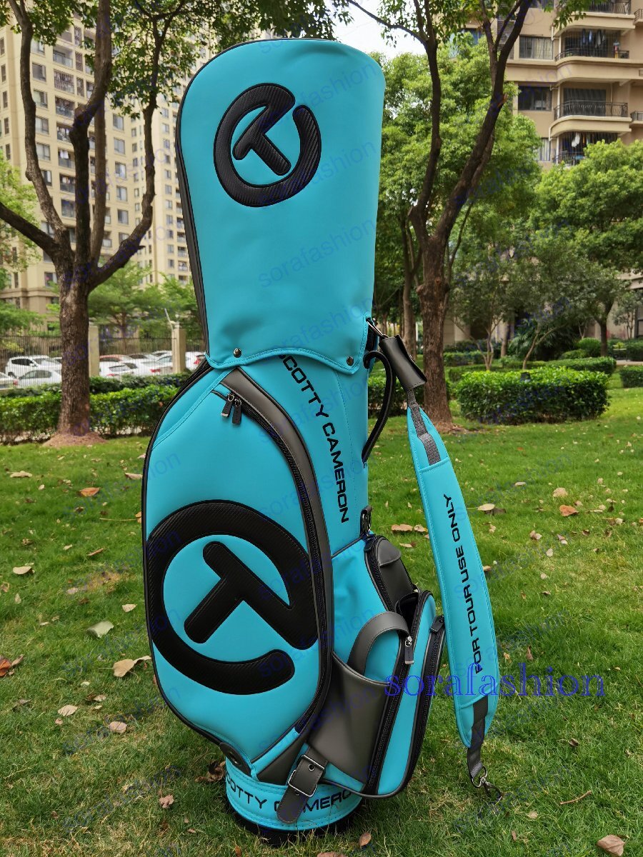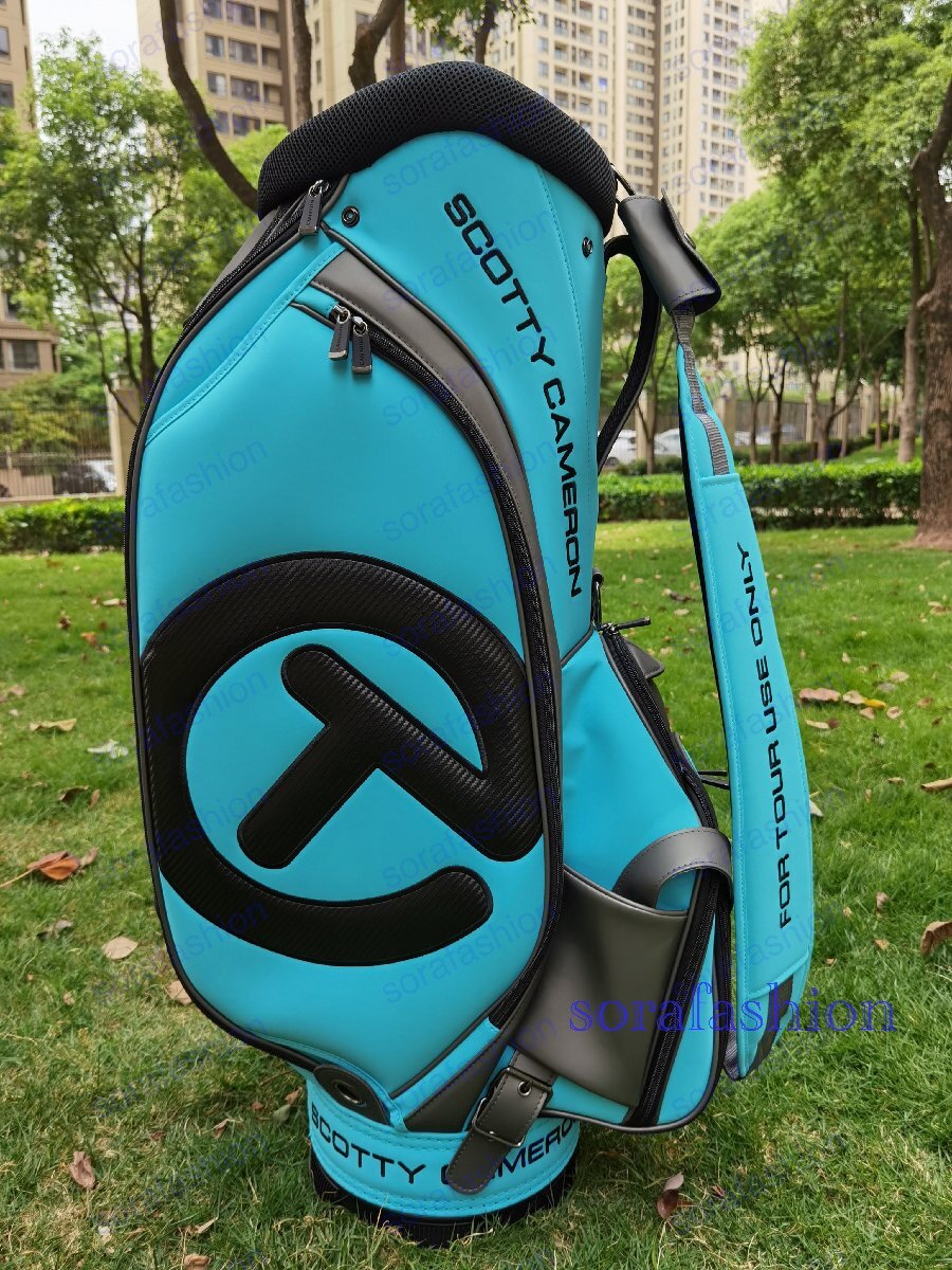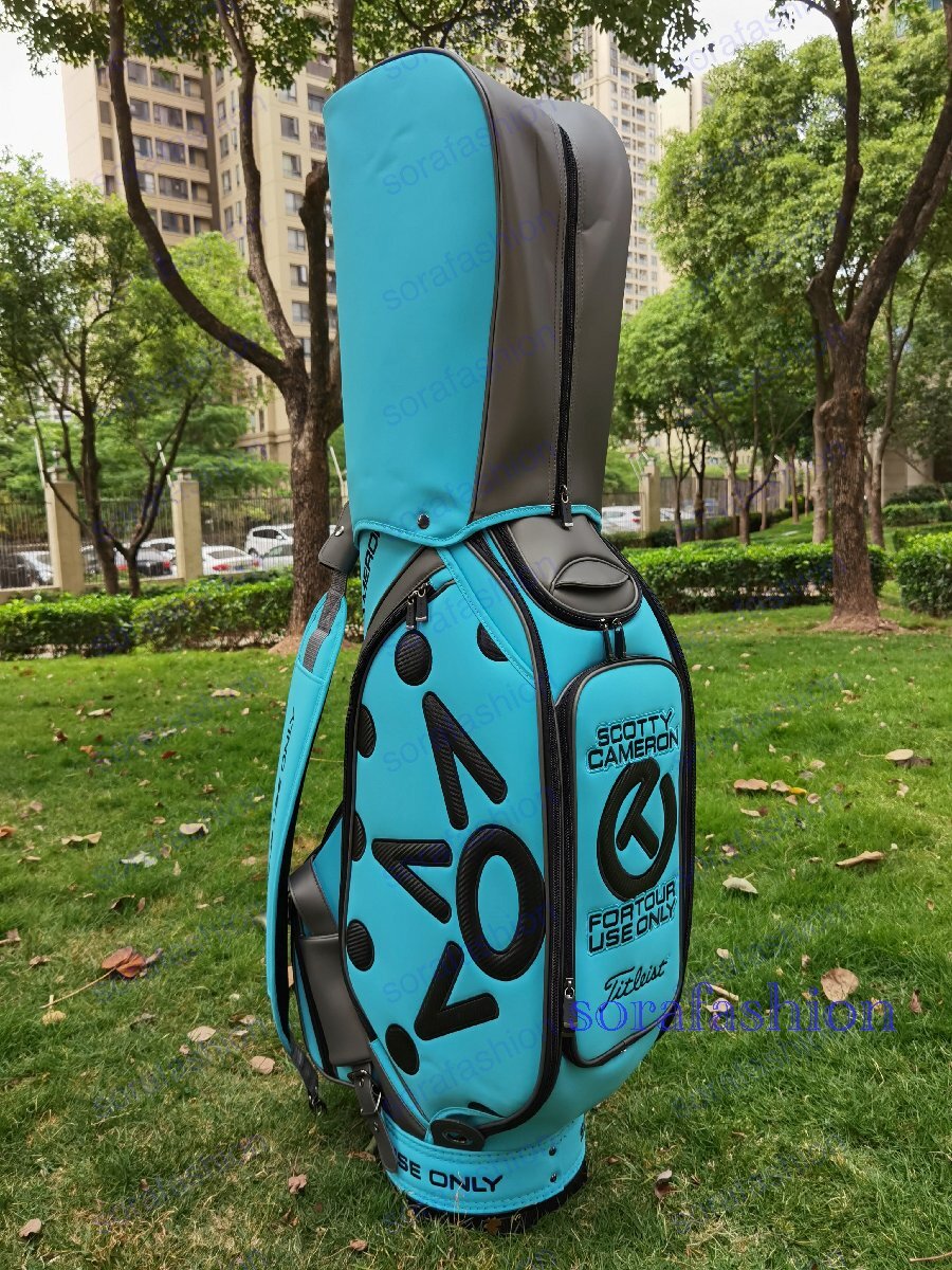 美品 スコッティ キャメロン タイトリスト ゴルフバッグ キャディバッグ 9型 約5kg  6分割 合成皮革 ライトブルー 黒サークルT
