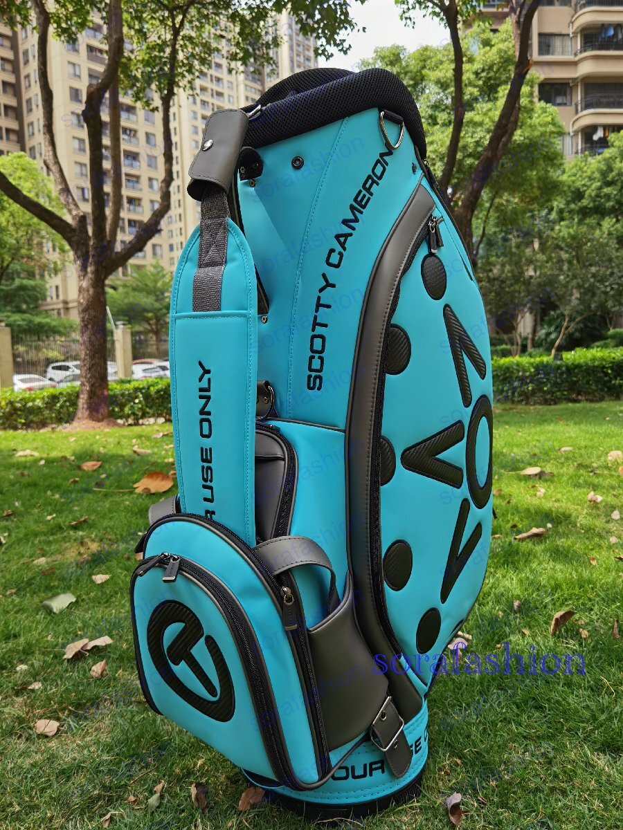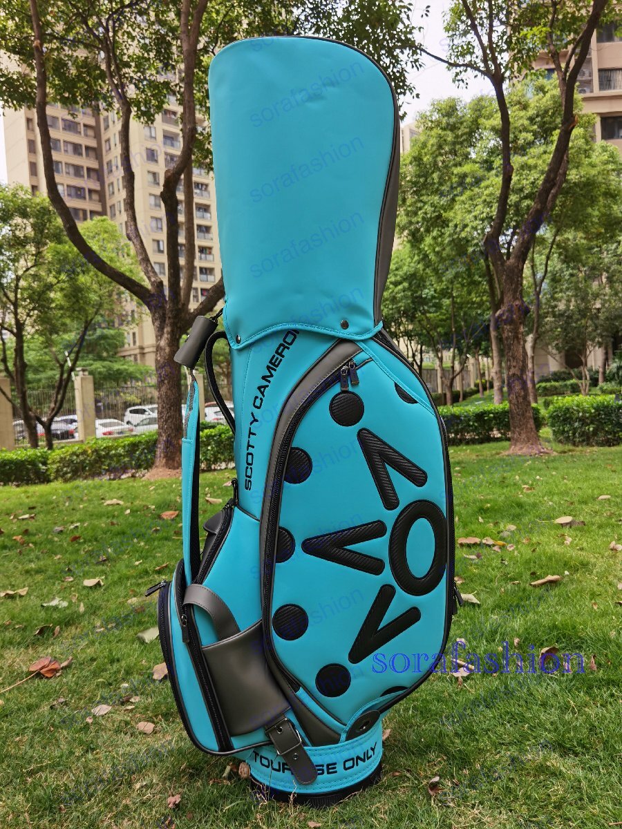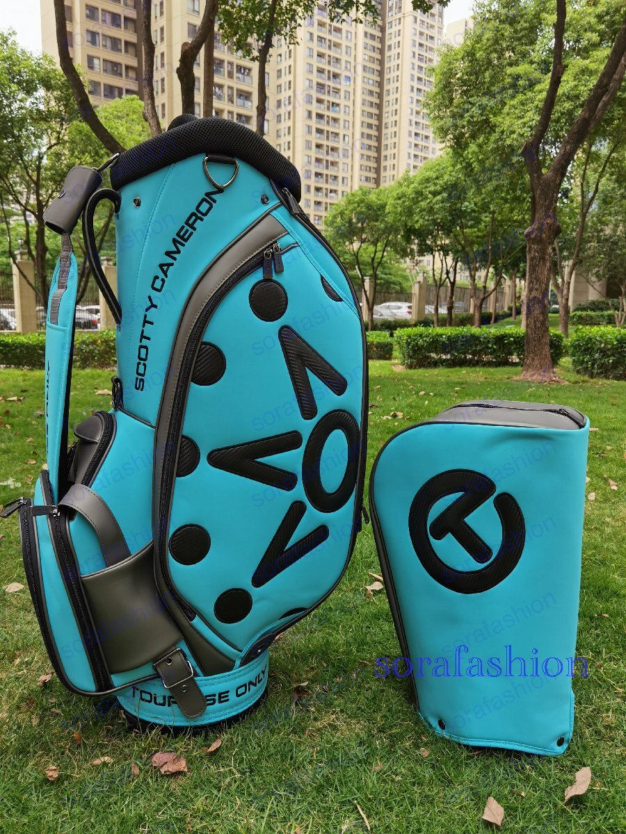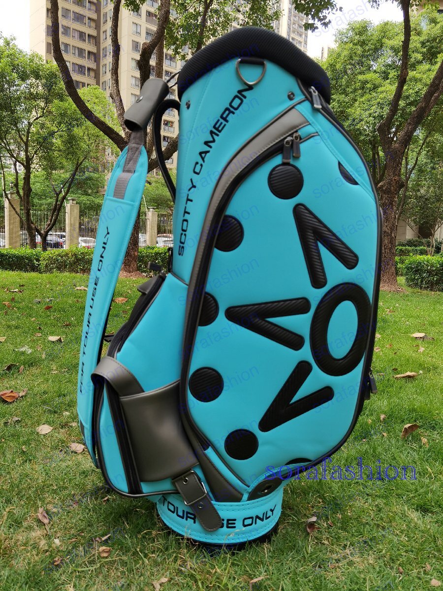美品 スコッティ キャメロン タイトリスト ゴルフバッグ キャディバッグ 9型 約5kg  6分割 合成皮革 ライトブルー 黒サークルT