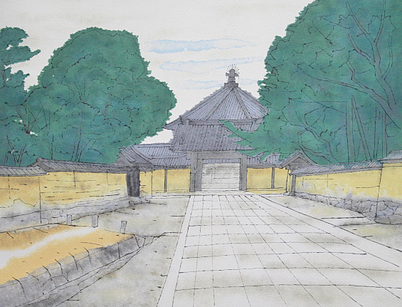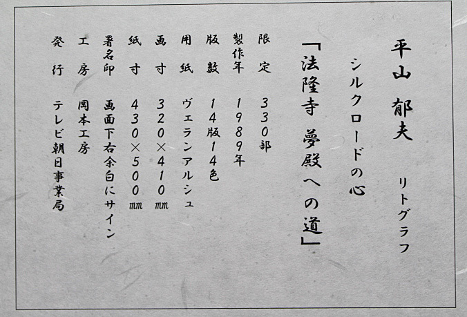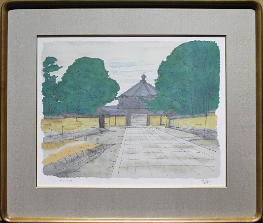 ■平山郁夫 【法隆寺 夢殿への道】 リトグラフ 直筆サイン エディション有り