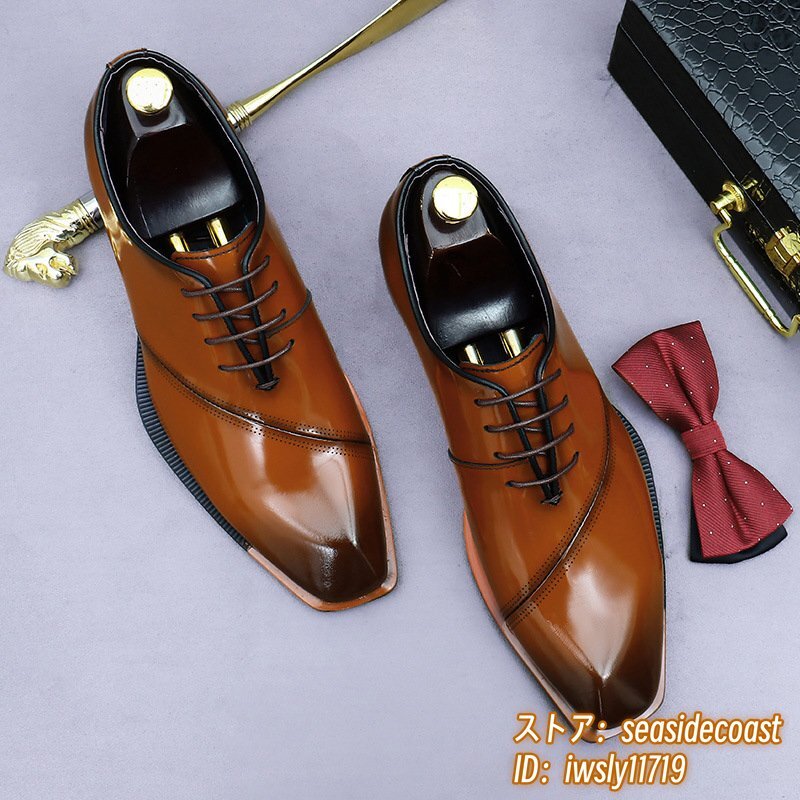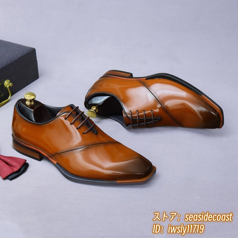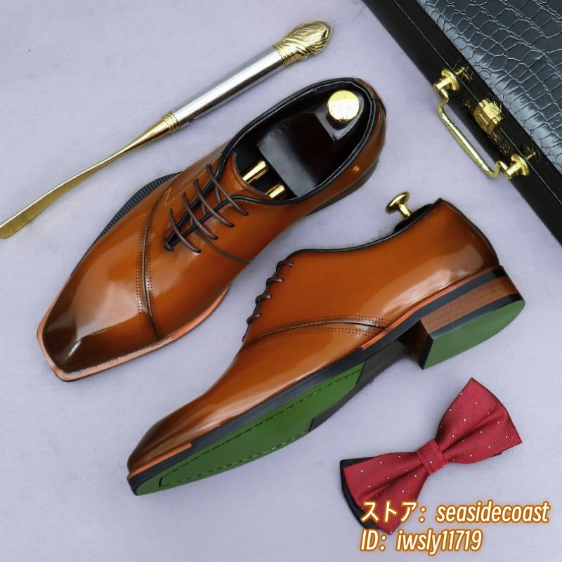 最高級◆牛革ビジネスシューズ メンズ 本革 レザーシューズ 職人手作り 彫り 通気 紳士靴 革靴 フォーマル ドレスシューズ ブラウン 25.0cm