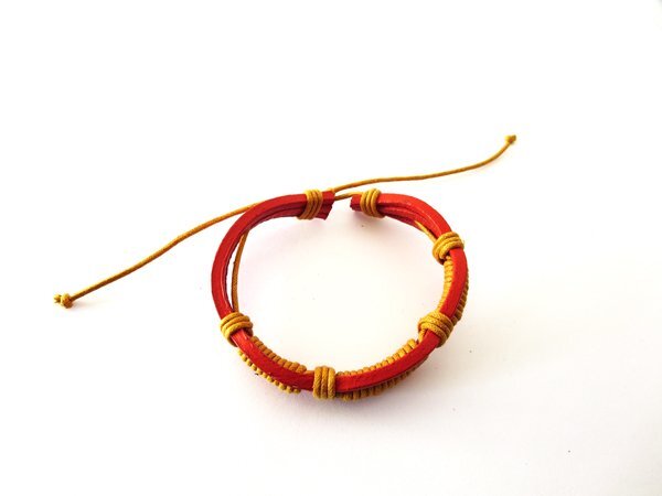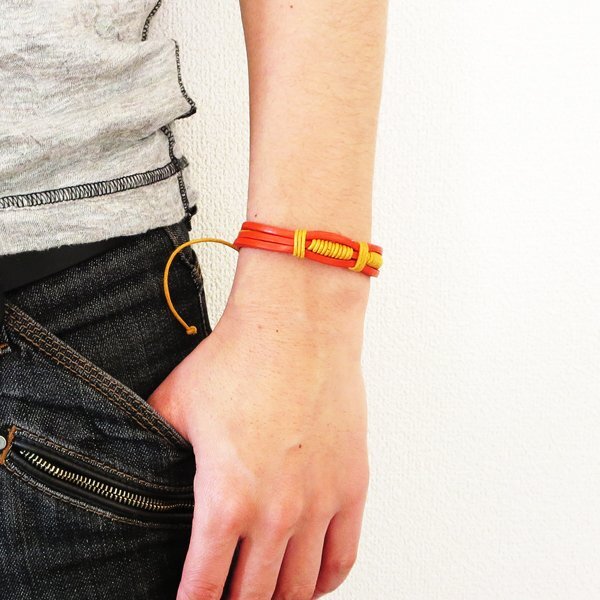 フェイクレザーカラフルブレスレット オレンジ 長さ調整可 LB48