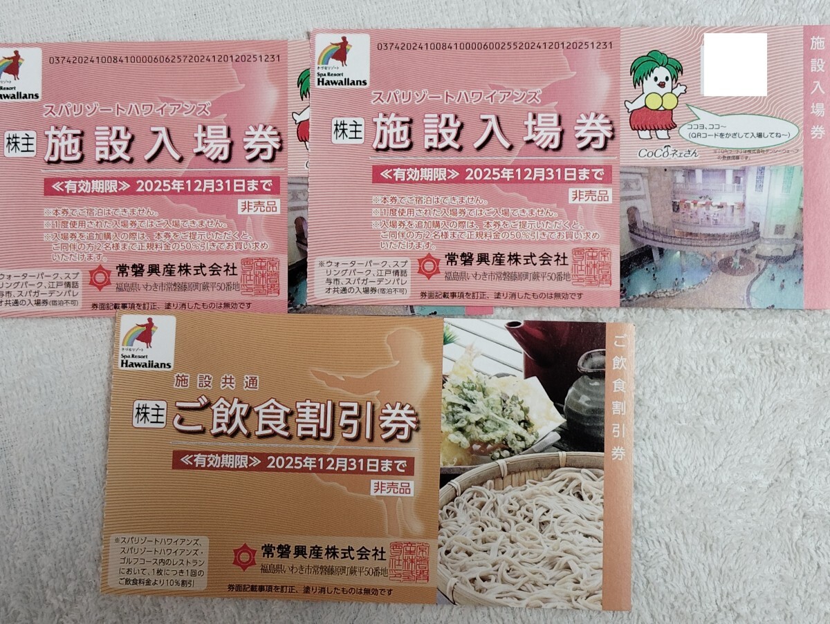 当日発送有り★スパリゾートハワイアンズ 無料入場券2枚セットオマケ付きZz
