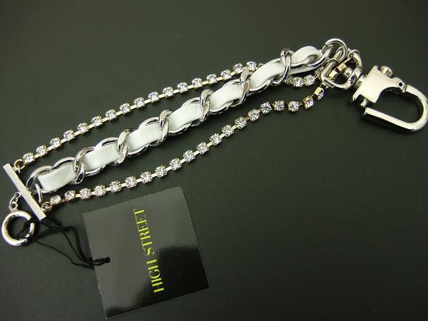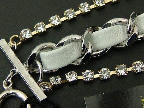 ■豪華ゴージャスで素敵です 無数の大粒ラインストーンと白レザー本皮革のブレスレット