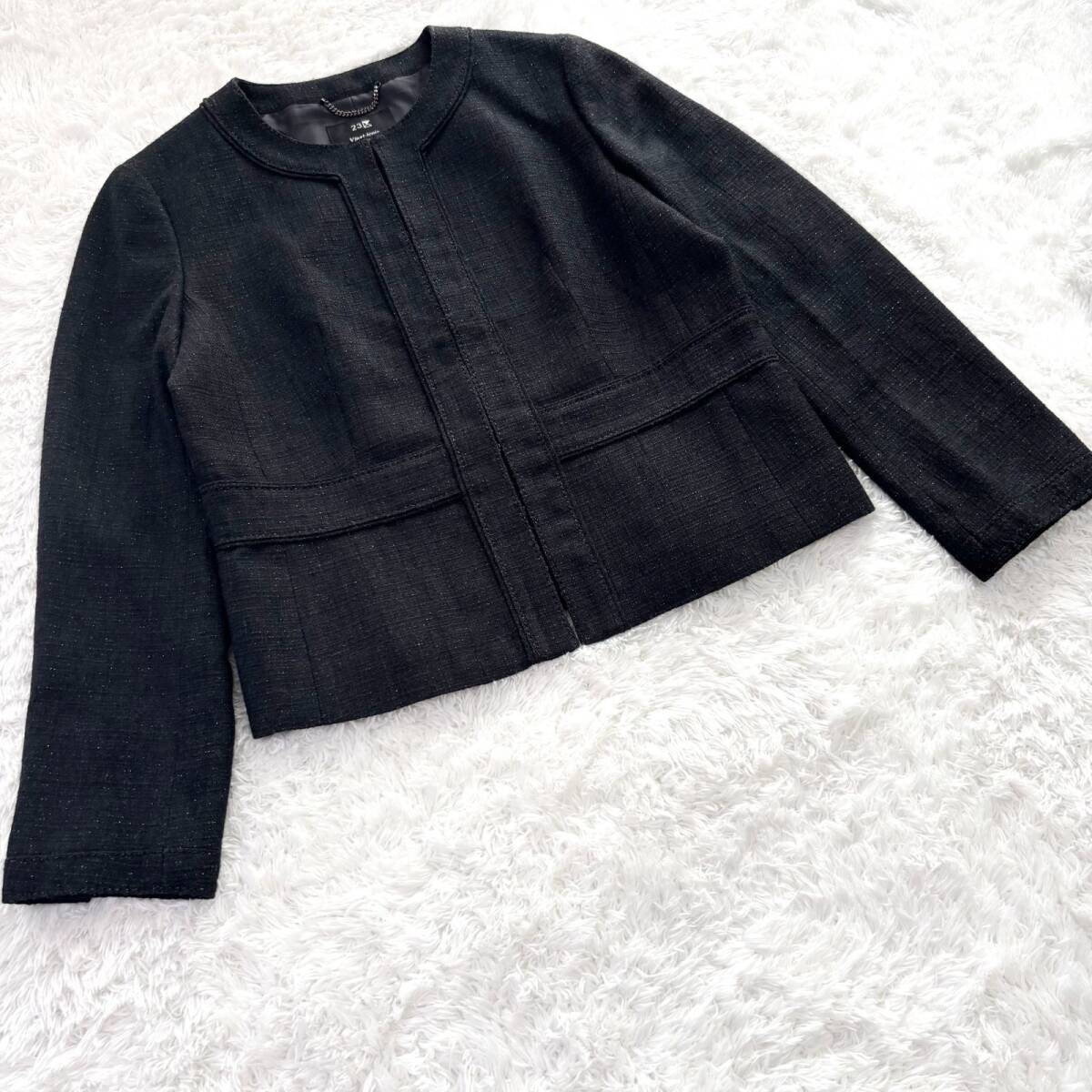 ツイードノーカラージャケット セレモニー フォーマル ジャケット カラーレス ラメ キラキラ
