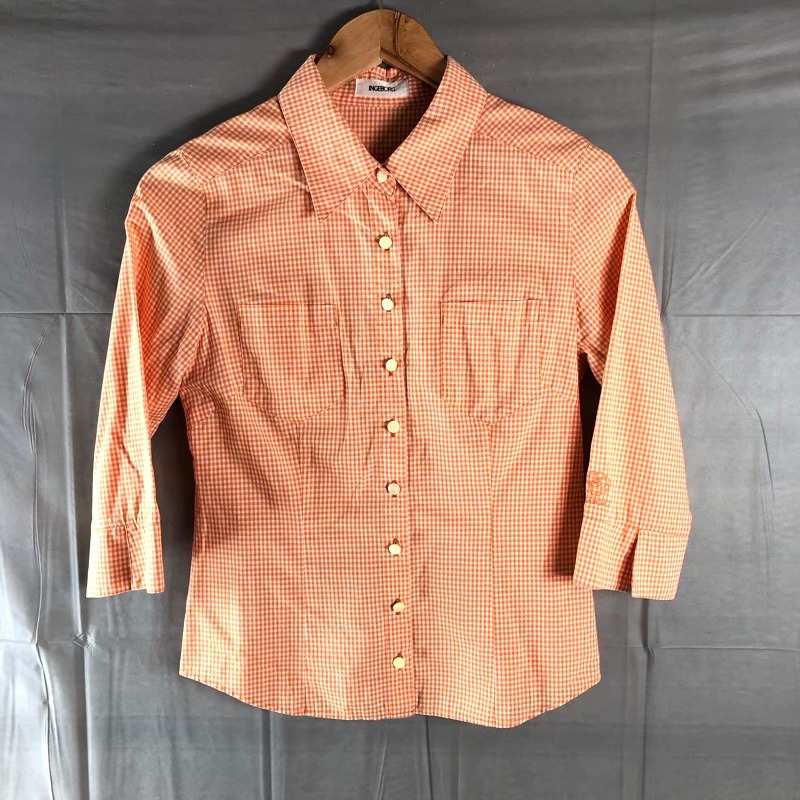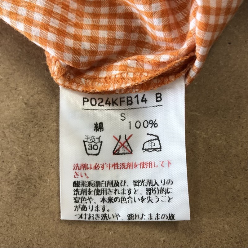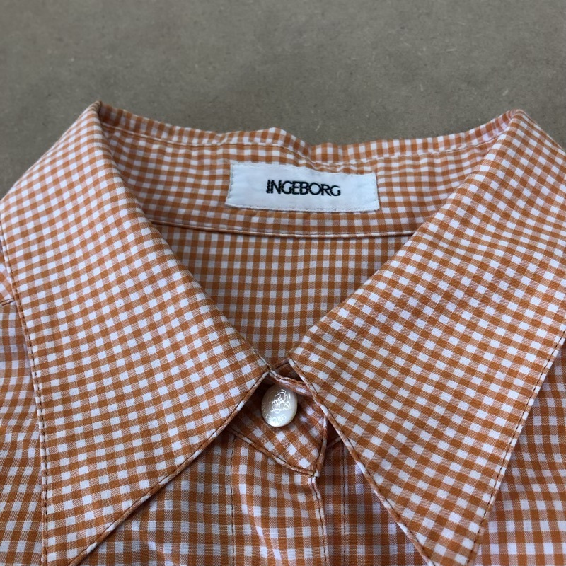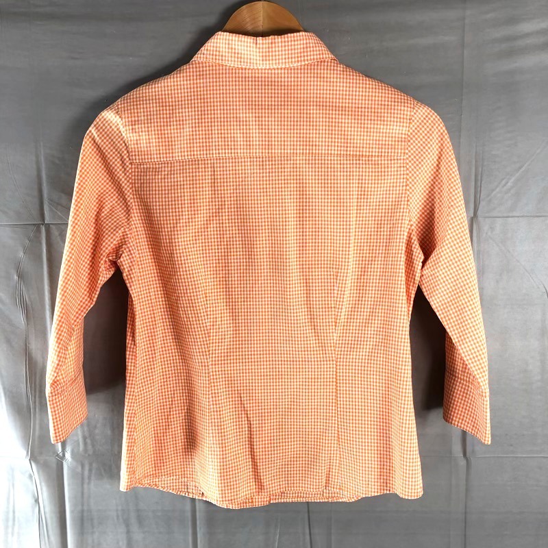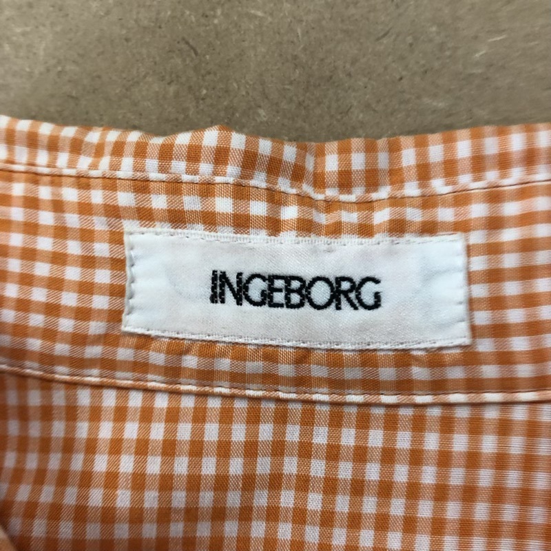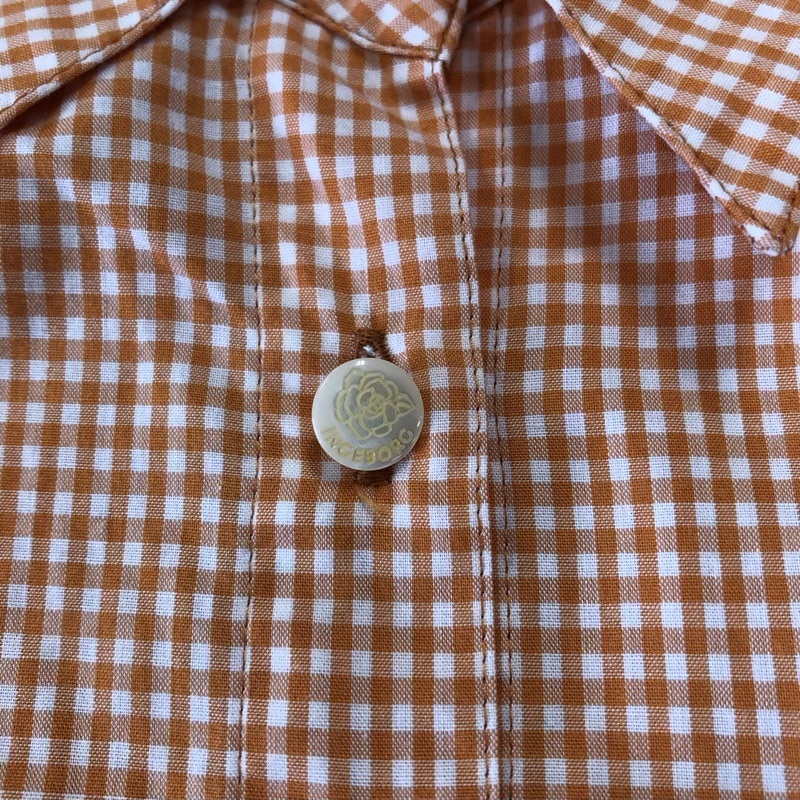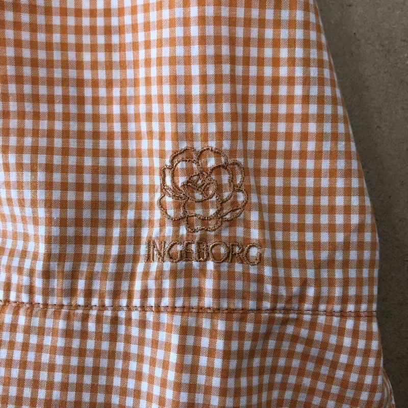 商品名 | インゲボルグ INGEBORG ブラウス チェック 袖刺繍 ブランドロゴ刺繍 ブランドボタン 胸ポケット 綿100% 日本製 オレンジ 白 Sサイズ 952638 |