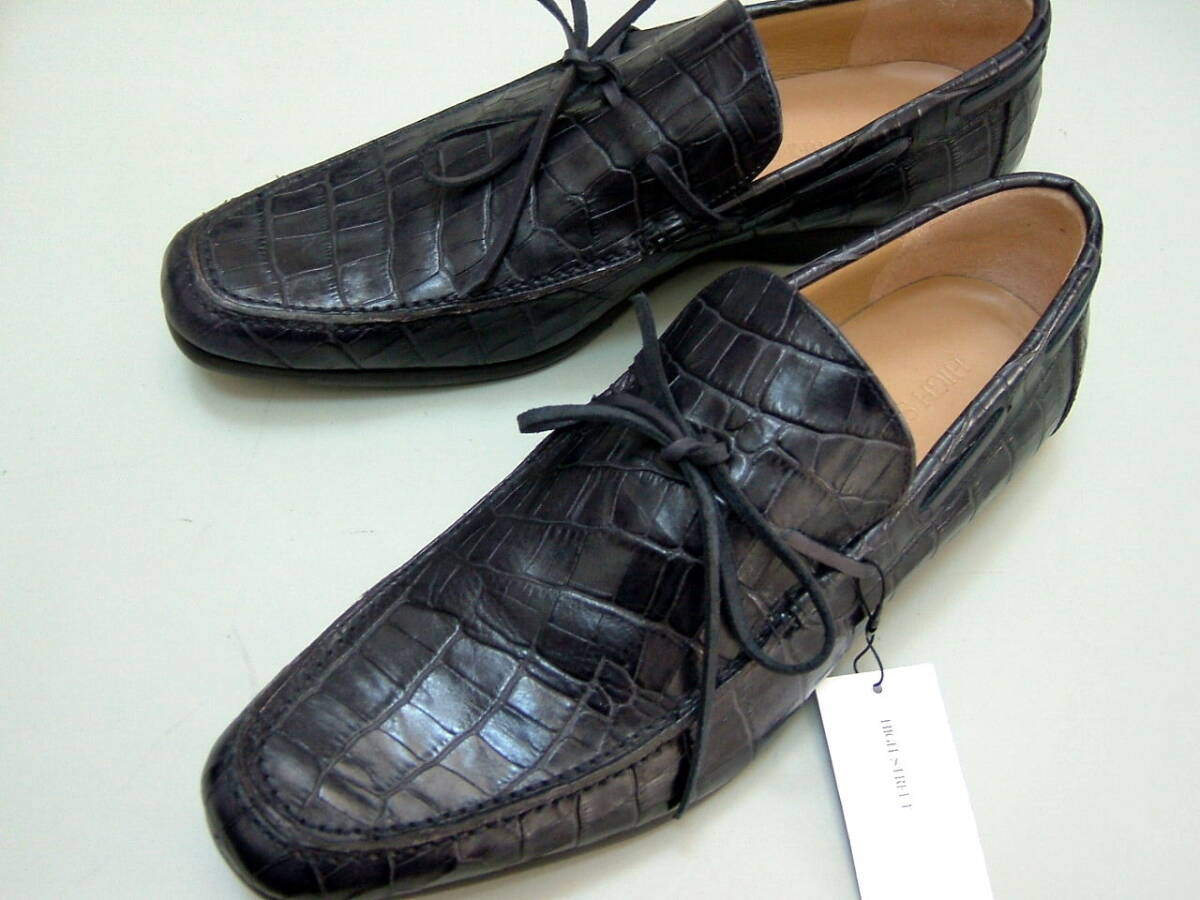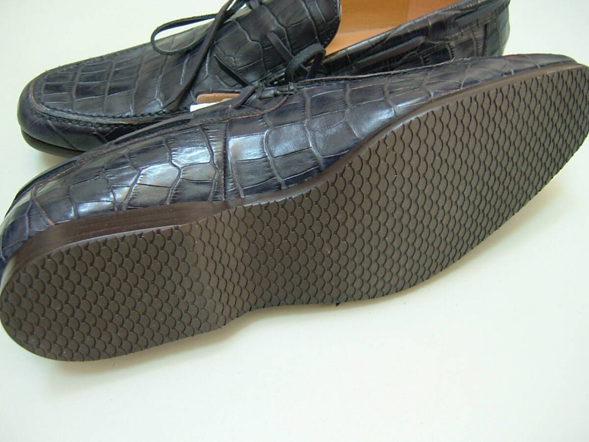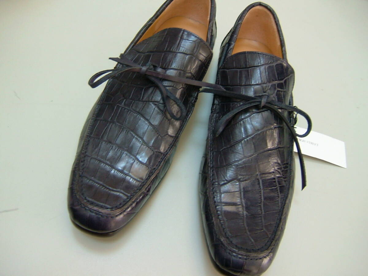 ■ハイストリート クロコ型押紺レザー本皮革シューズ