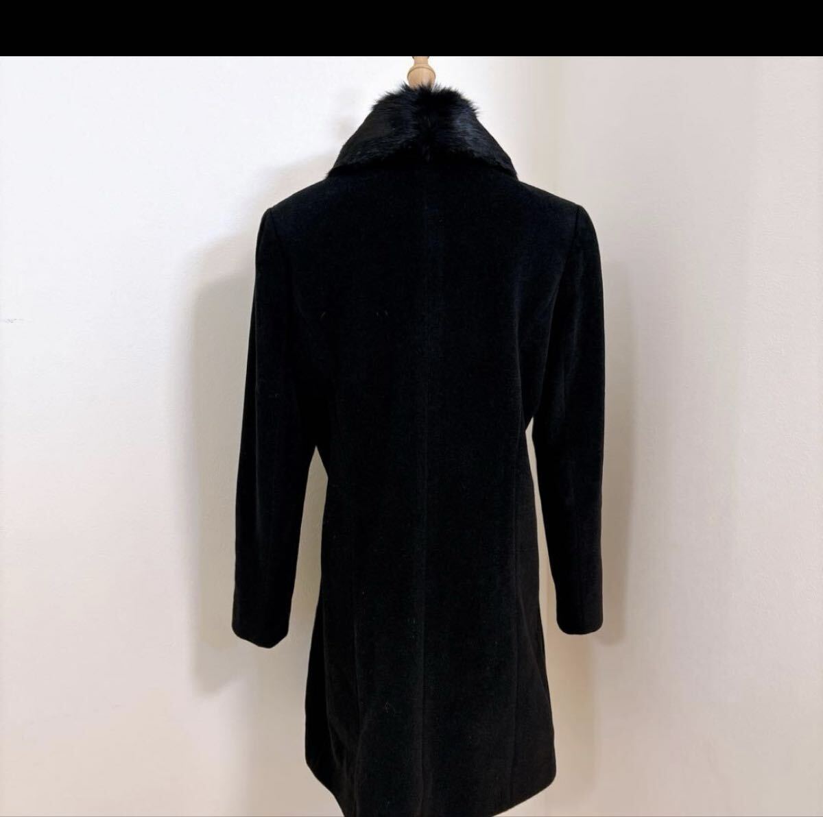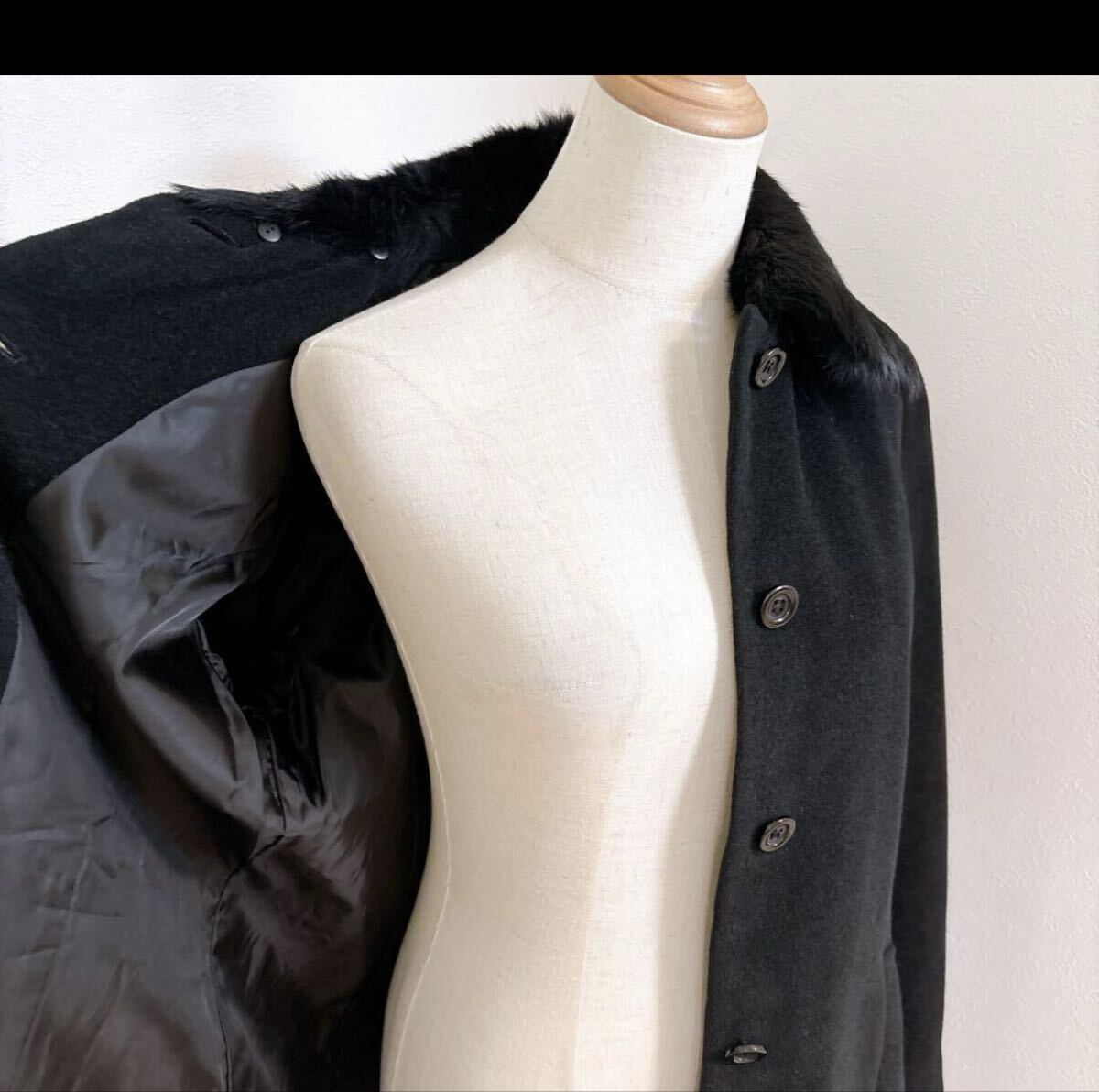 目立った傷や汚れはなく、良好なコンディションです。ラビットファーも毛並みが美しく保たれています。ボタンも全て揃っており、すぐにご着用いただけます。