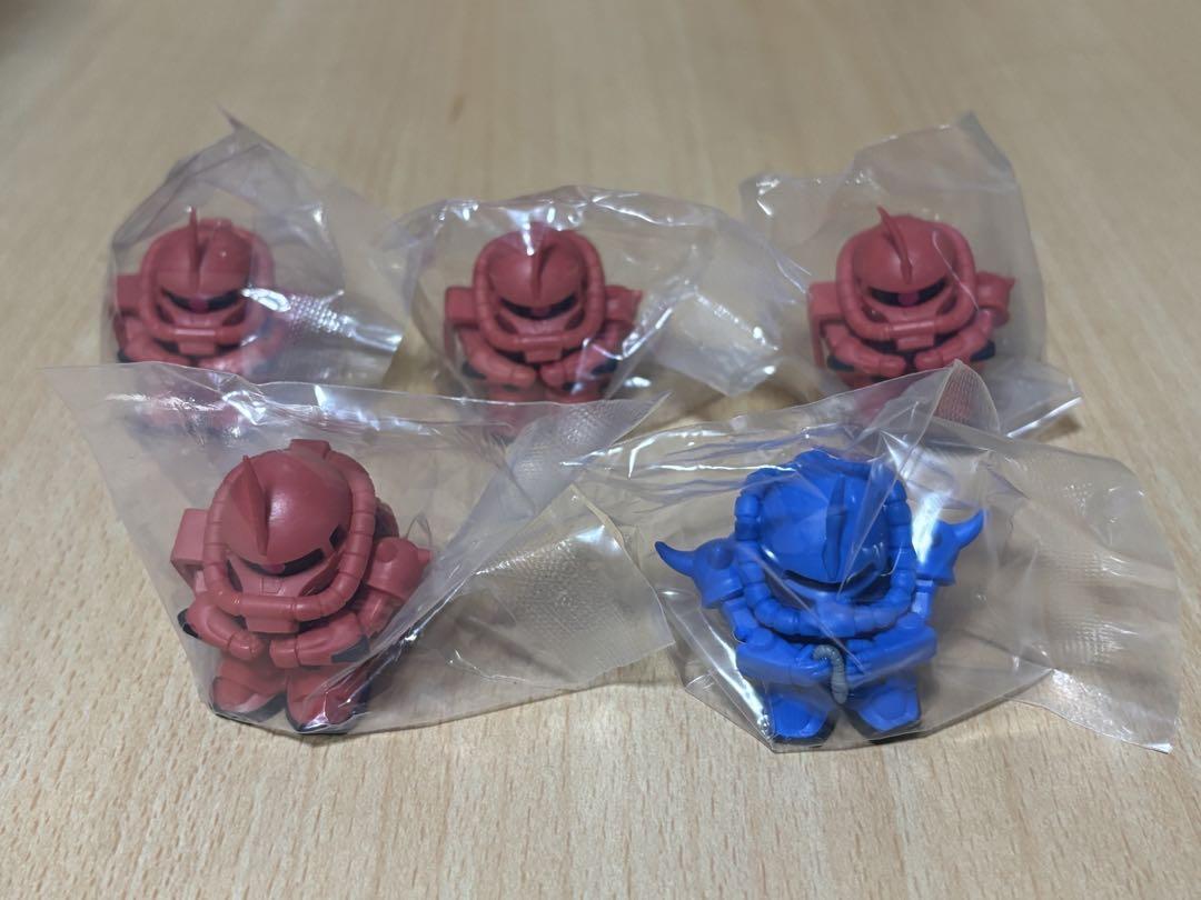 まちぼうけ ガンダムの場合3のシャア専用ザク4体とグフのセットです。