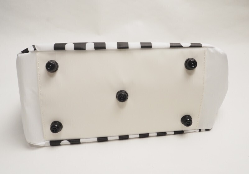 重さが"270g"と超軽量。500mlのペットボトルが立ててすっぽり収まる使いやすいサイズで、内装にはオープンポケットが2つあります。また、底鋲が付いているので鞄の底が汚れてしまったり、擦れてしまうことを軽減してくれます。