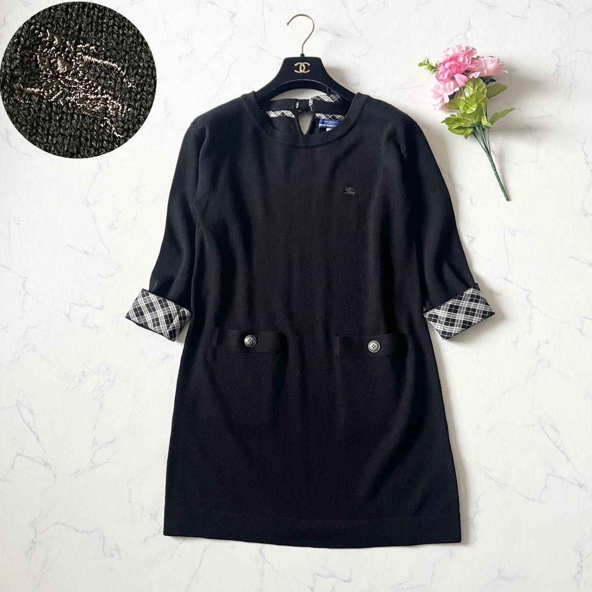 BURBERRY BLUE LABEL バーバリーブルーレーベル ニットワンピース 袖口チェック ホースロゴ