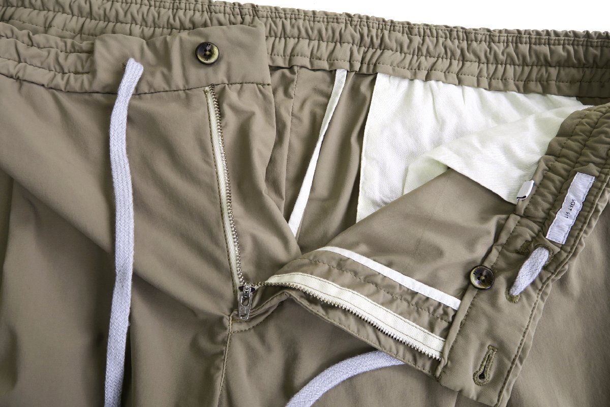 【仕様】ファスナー開閉、ウエストシャーリングゴム、ドローコード、、前身:スラントポケット×各1、コインポケット×1