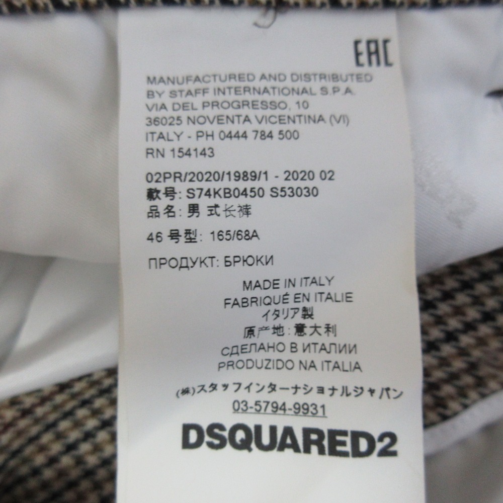 良品 DSQUARED2 ディースクエアード 千鳥格子柄 スラックスパンツ サイズ46 ベージュ