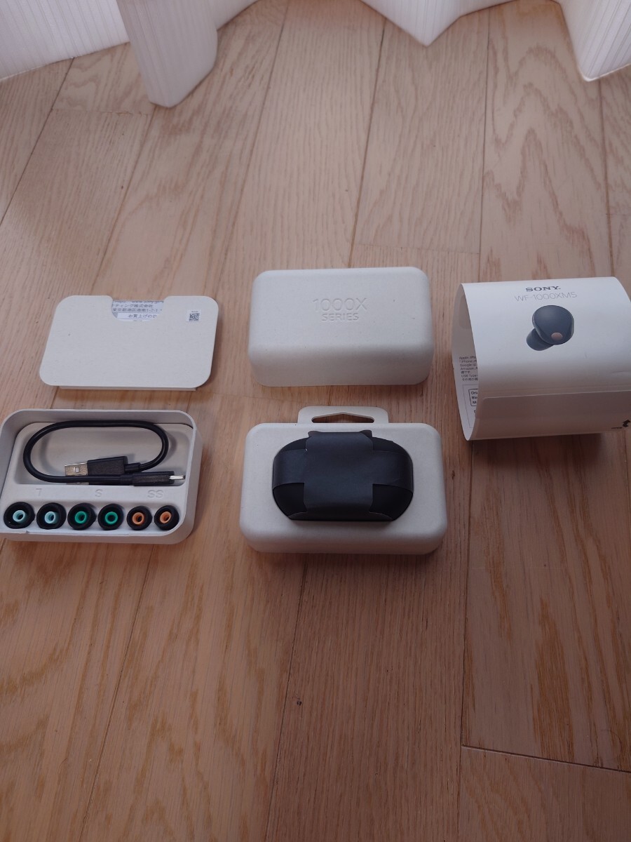 イヤーピースはSSを使用していました。このためそれ以外のサイズ(S,M.L)及び充電コードは未使用です。その他保証書(無記載)等も全て揃っています。いずれも写真でご確認ください。