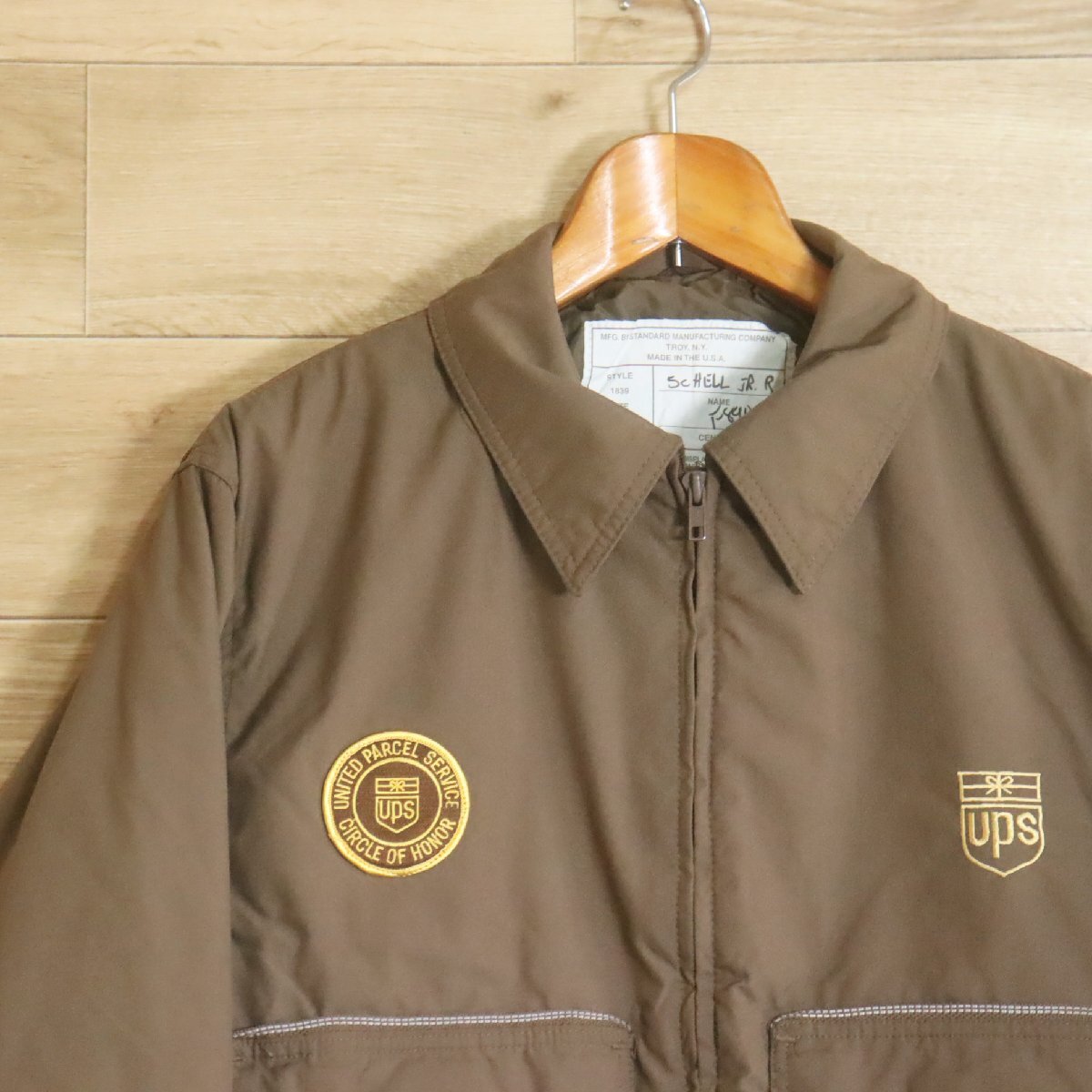%7S/R7.22-7 USA製 ワークジャケット ナイロンジャケット UPS 刺繍 ワッペン ジャンパー ブルゾン ユニフォーム メンズ Lサイズ