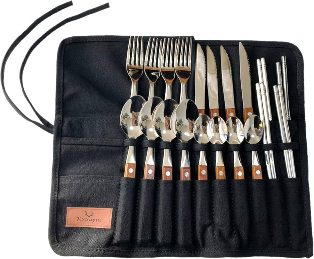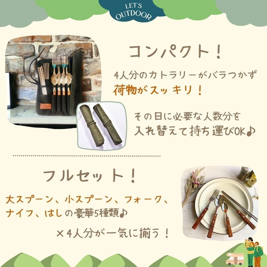 ブラック色 kuuupiii カトラリーセット 4人用 21点セット キャンプ アウトドア 収納 木製 ステンレス おしゃれ バーベキュー
