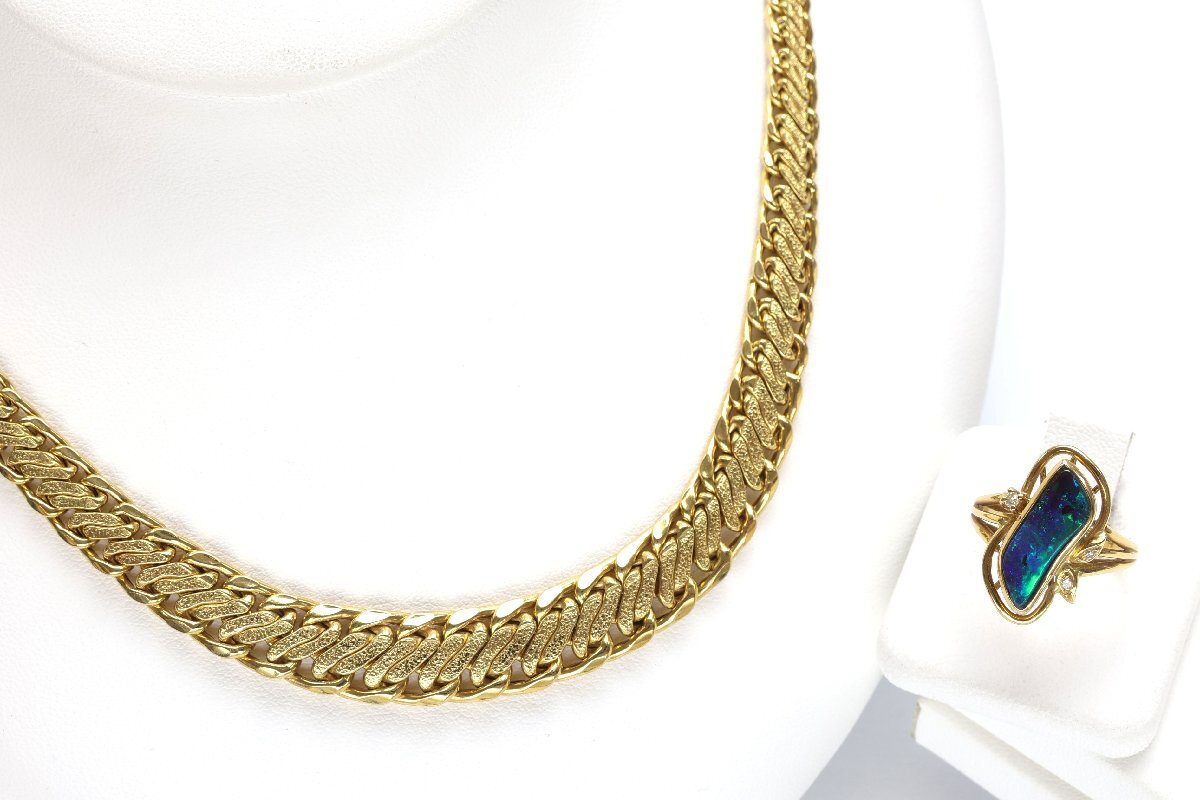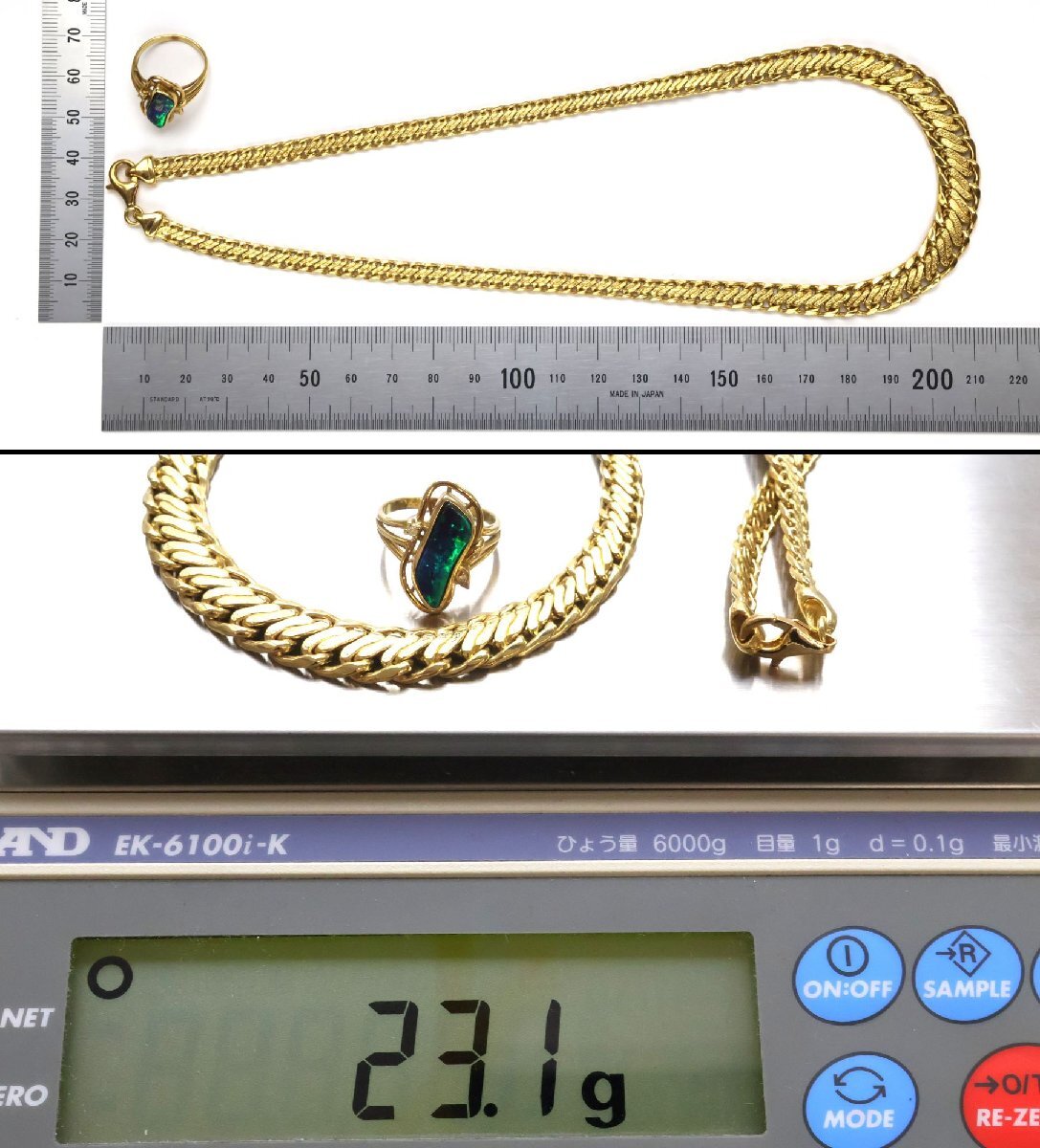 おたからや◆750刻印/K18相当ジュエリー 2点《約23.1g》デザインチェーンネックレス,石付リング等 ※X線結果ご参照下さい【B-YA02531】