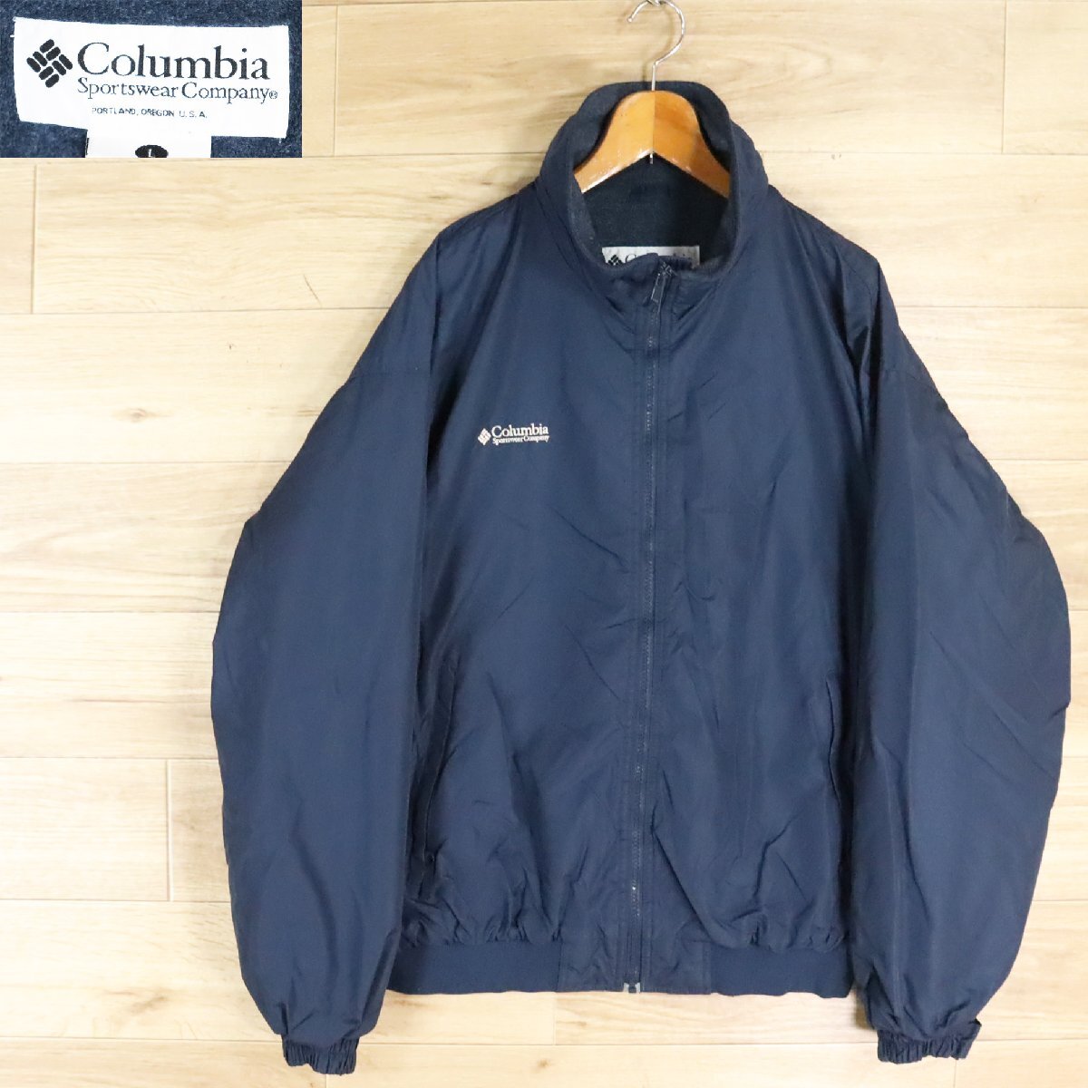 M8T/D8.7-1 Columbia コロンビア ウォームアップジャケット 裏フリース ナイロンジャケット ネイビー メンズ L