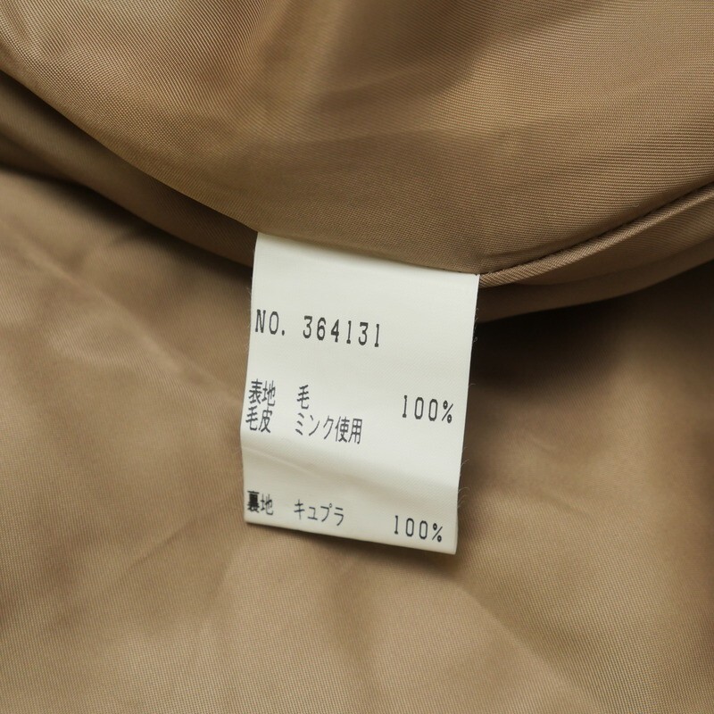| 素材 | 毛100% 毛の中の割合 カシミア100% 毛皮 ミンク使用 裏地 キュプラ100% |