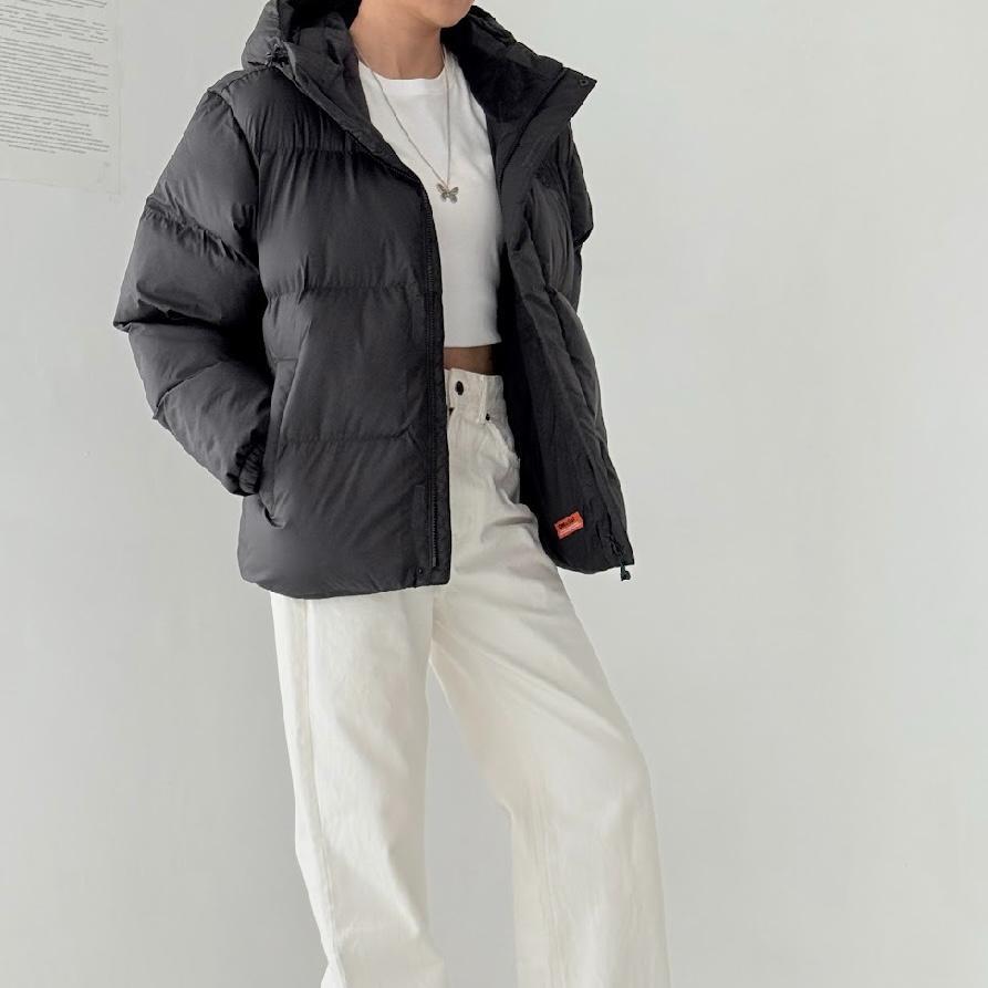 軽くて暖かい「オンボール中綿」を使用したベーシックなフード付きパディングジャケット。