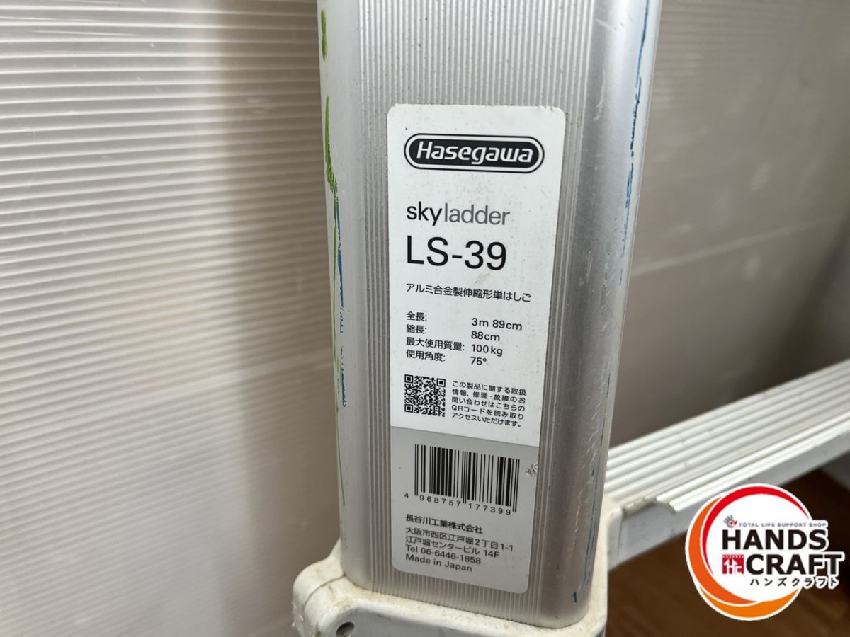 ♪長谷川工業 LS-39 アルミ合金製伸縮形単はしご ハセガワ【中古】