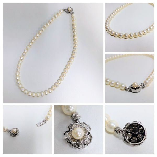 真珠 パール ネックレス SILVER刻印 約5-7mm イヤリング WGK14 約9mm 総重量約41g ※イヤリング留め具外れあり IT7PZ549KXVO F0