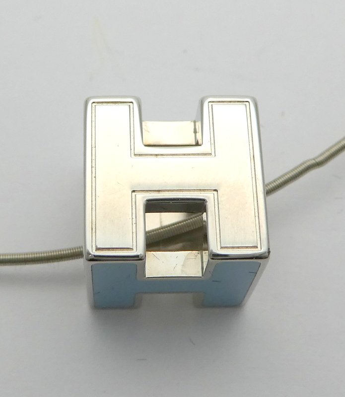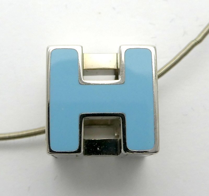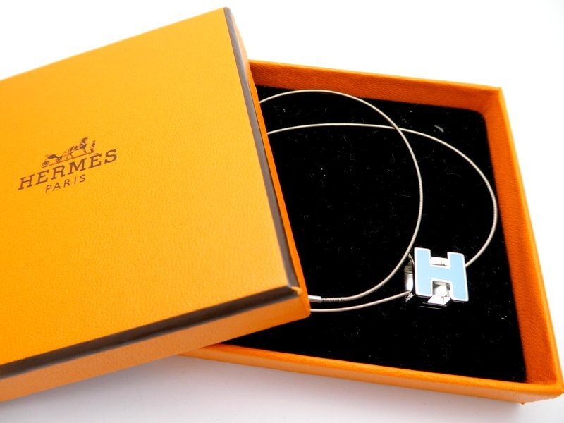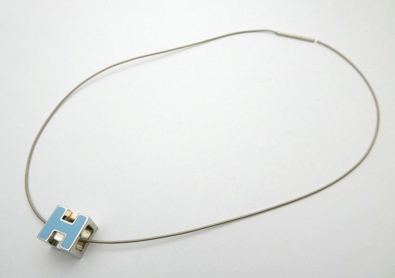 ネックレス HERMES エルメス カージュドアッシュ Hキューブ 水色xシルバーカラー 箱付 チョーカー ブランド アクセサリー 1円~ K0258