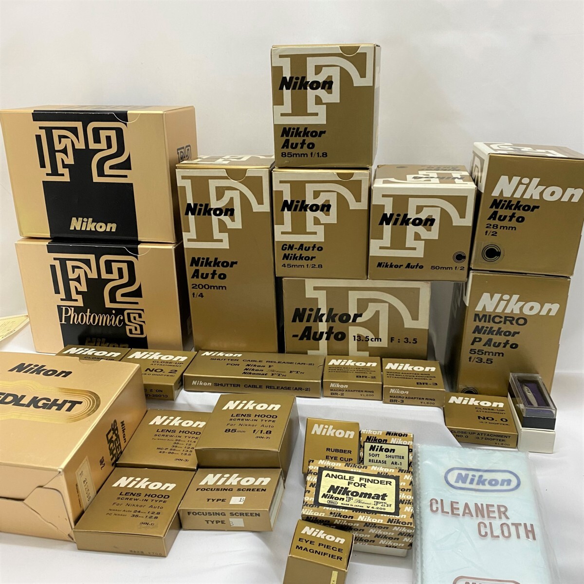 ニコン「未使用 F2とF2Photomic S」レンズ5本 フルセット オーダーアルミBOX付 セット 1973年製 コレクター出品 | |||