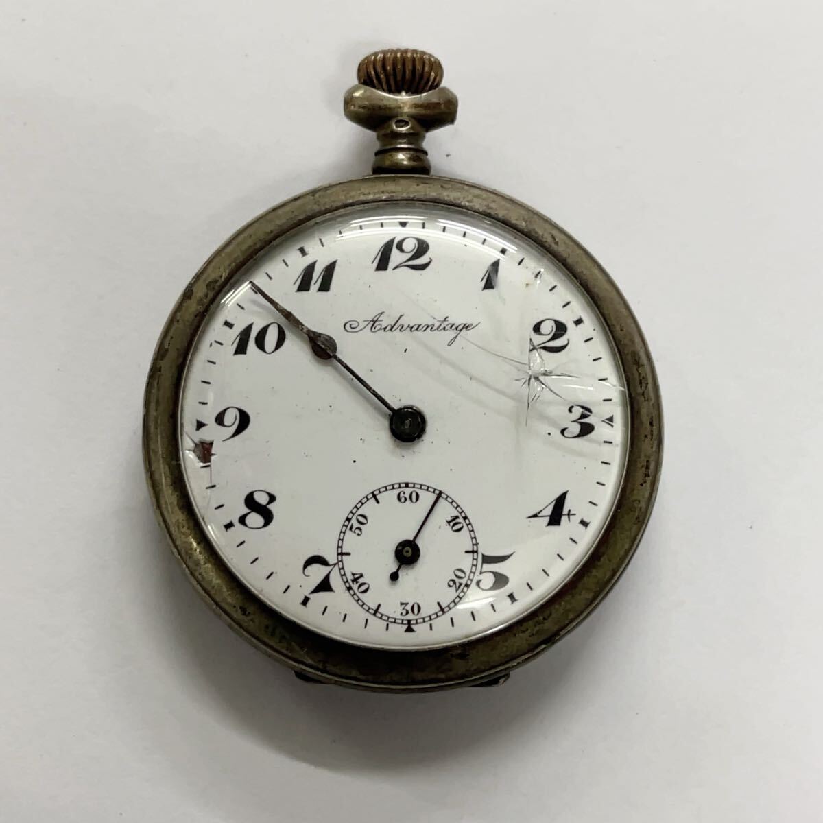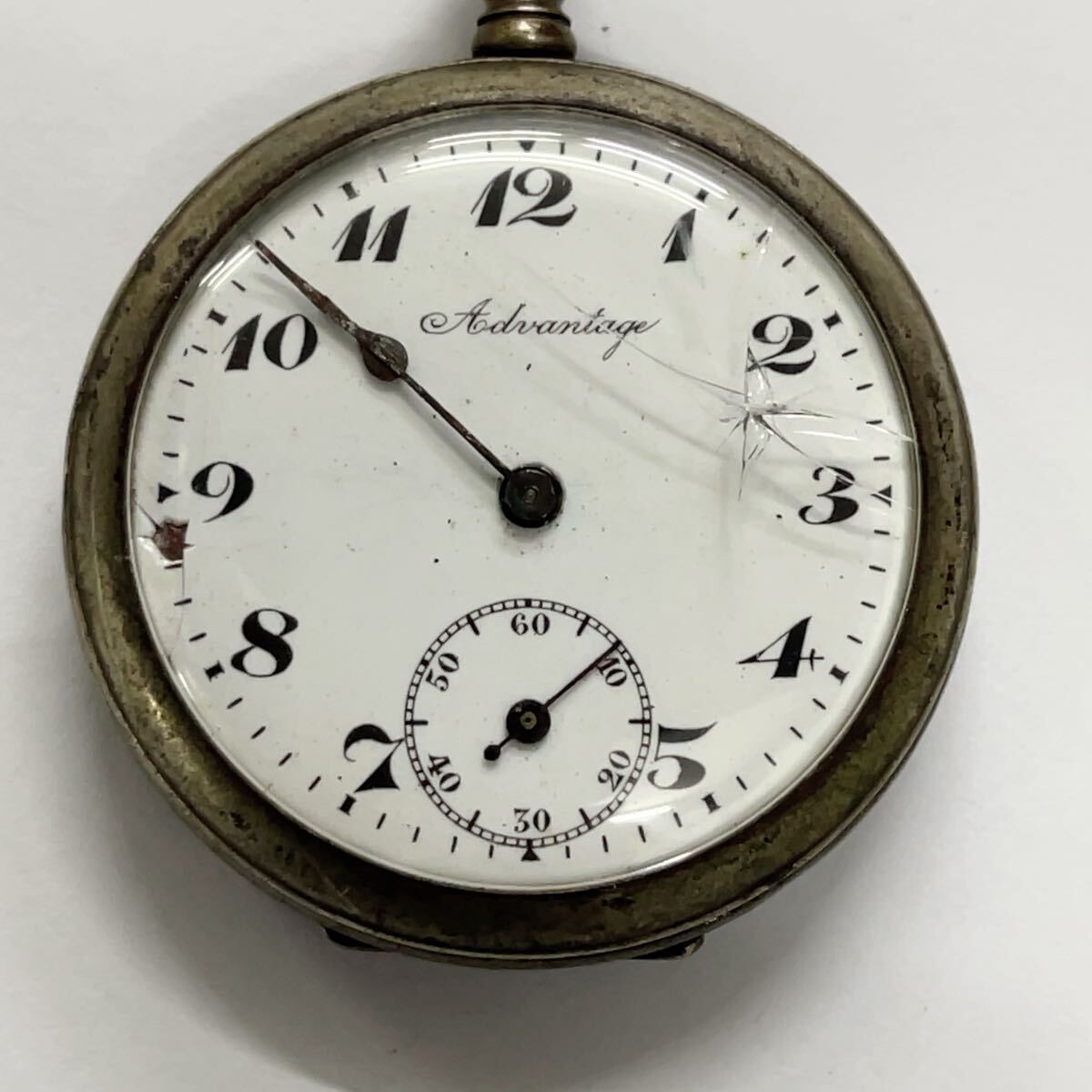 アンティーク 銀製 Siver800 ADVANTAGE 手巻き 懐中時計 スモセコ 白文字
