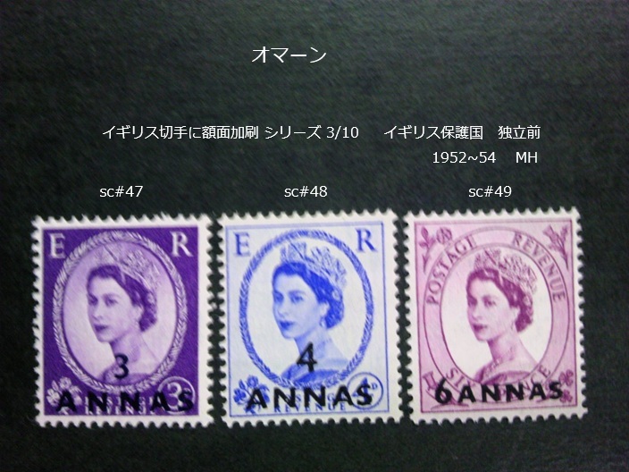 オマーン 額面加刷s 英・保護国 1952~4 sc#47~9